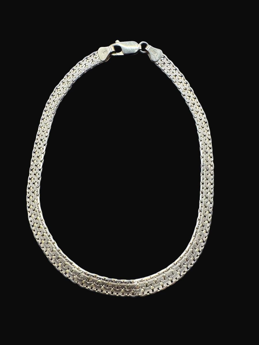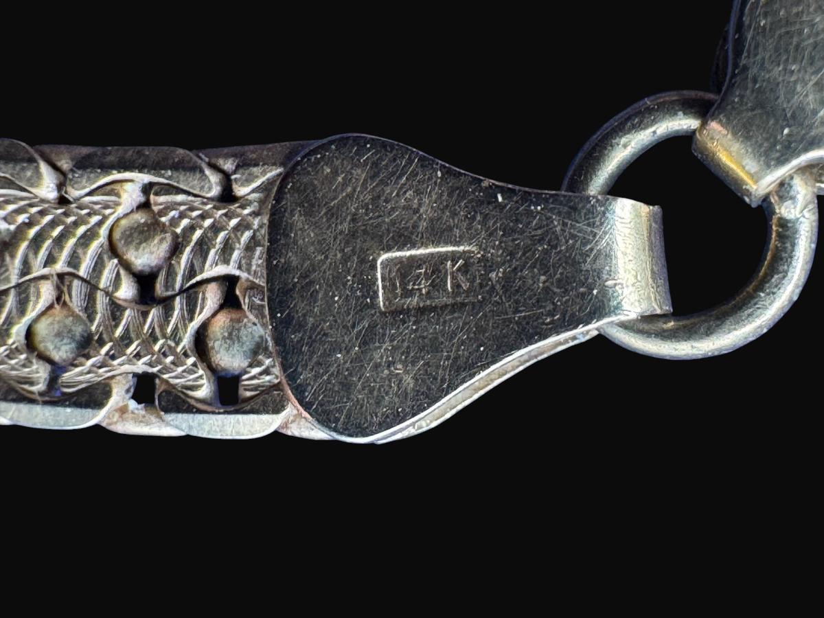 **WIRE TRANSFER IS REQUIRED IF SHIPPED.** [6.98g] This is a Royal or Spiga style chain. The clasp works as it should. There is age related wear. Measurement: 8.5”L. Pre-auction estimate: $500-$700. **ALL PRECIOUS METALS SALES ARE FINAL. NO REFUNDS WILL BE GIVEN FOR ANY REASON.** [KB]