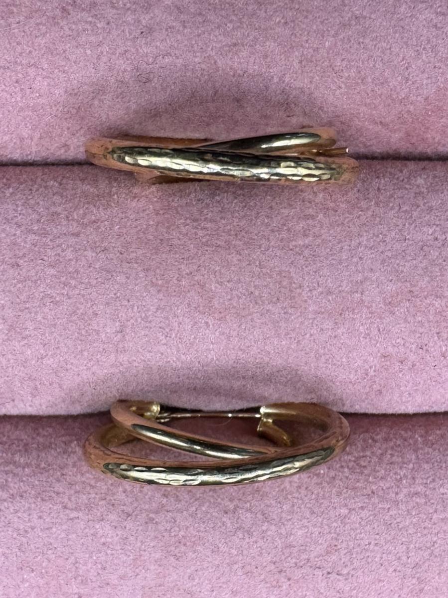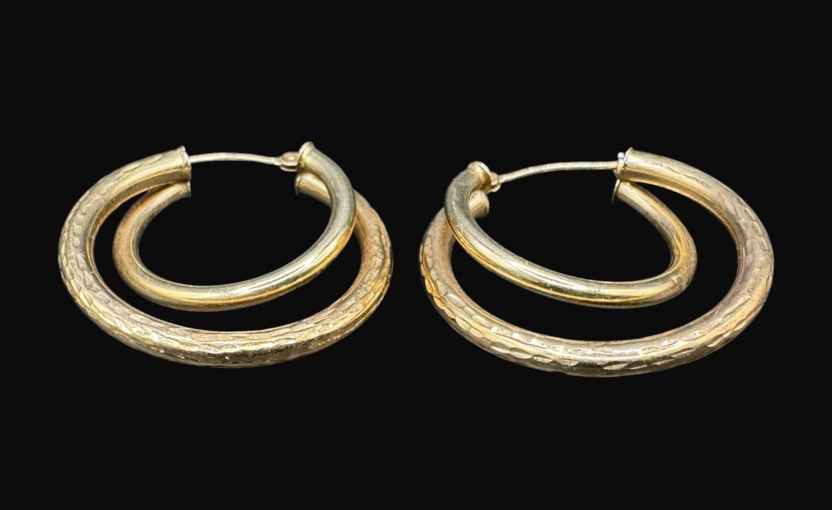 **WIRE TRANSFER IS REQUIRED IF SHIPPED.** [1.93g] These hoop earrings have both a hammered and smooth finish. Some minor age related wear. **ALL PRECIOUS METALS SALES ARE FINAL. NO REFUNDS WILL BE GIVEN FOR ANY REASON.** [KB]