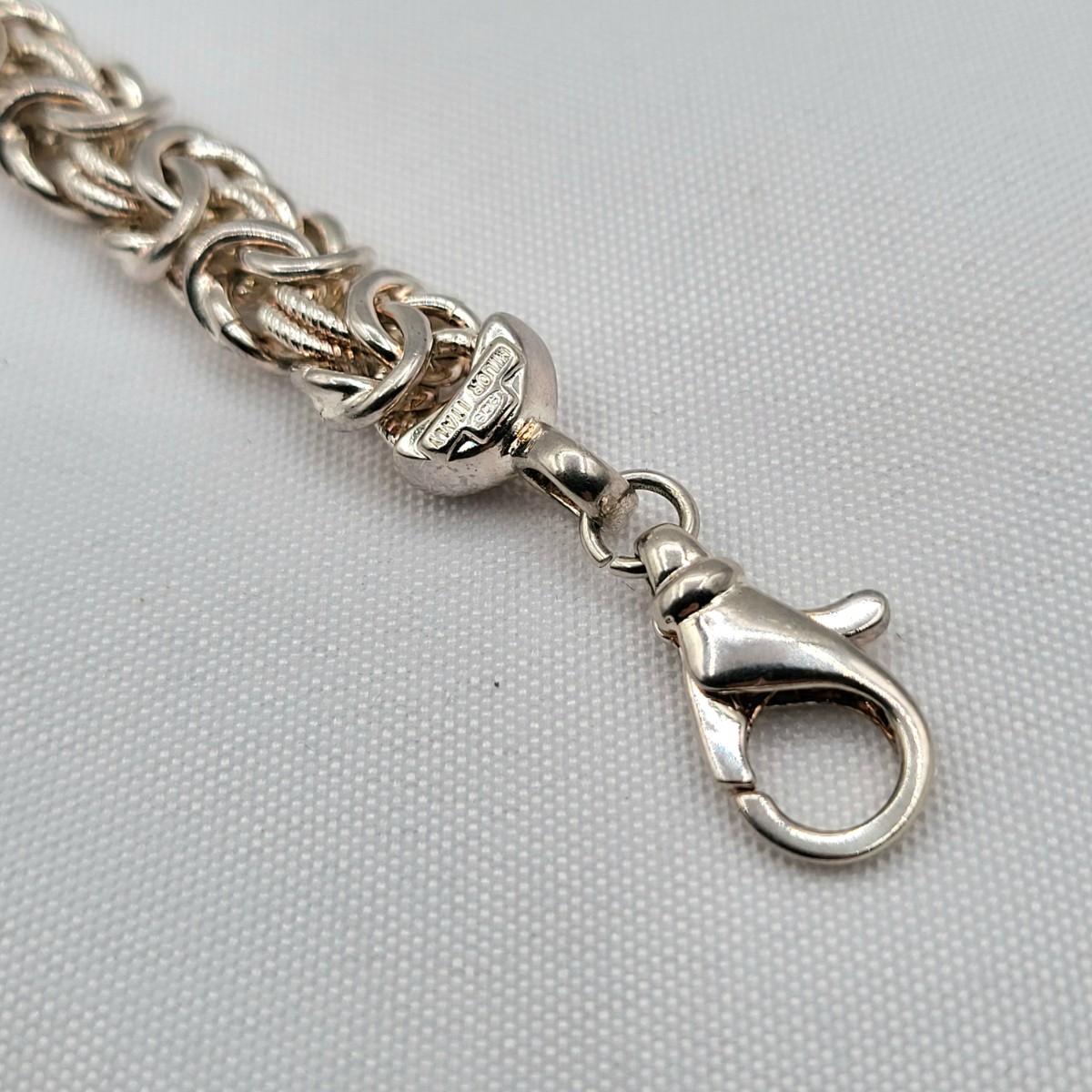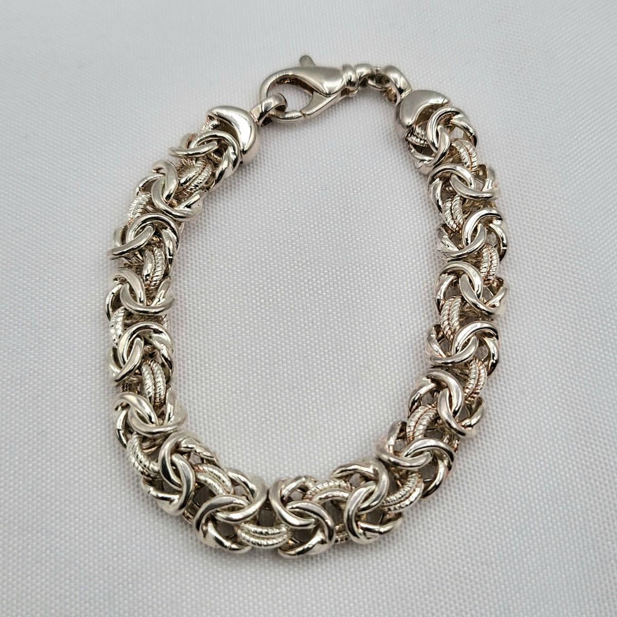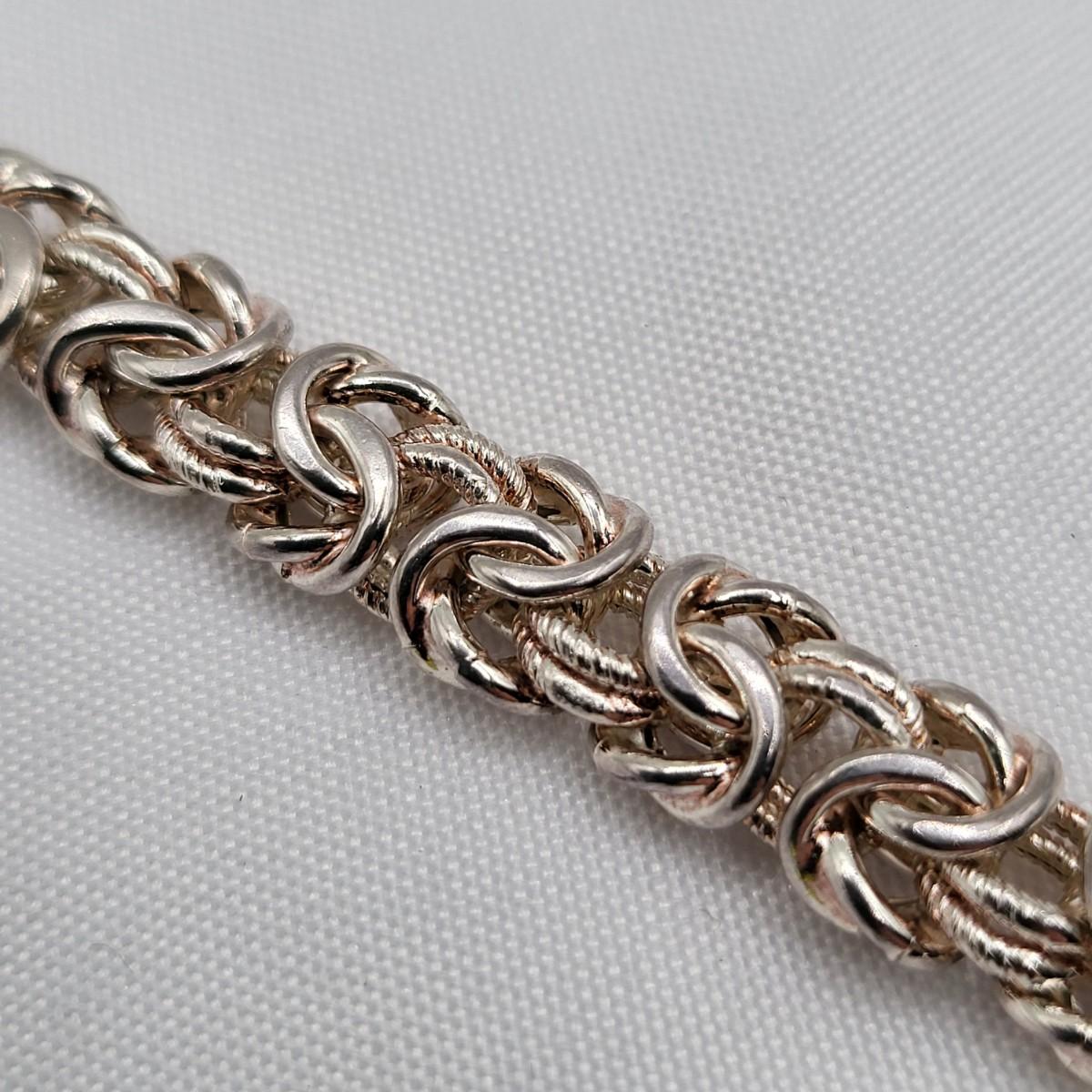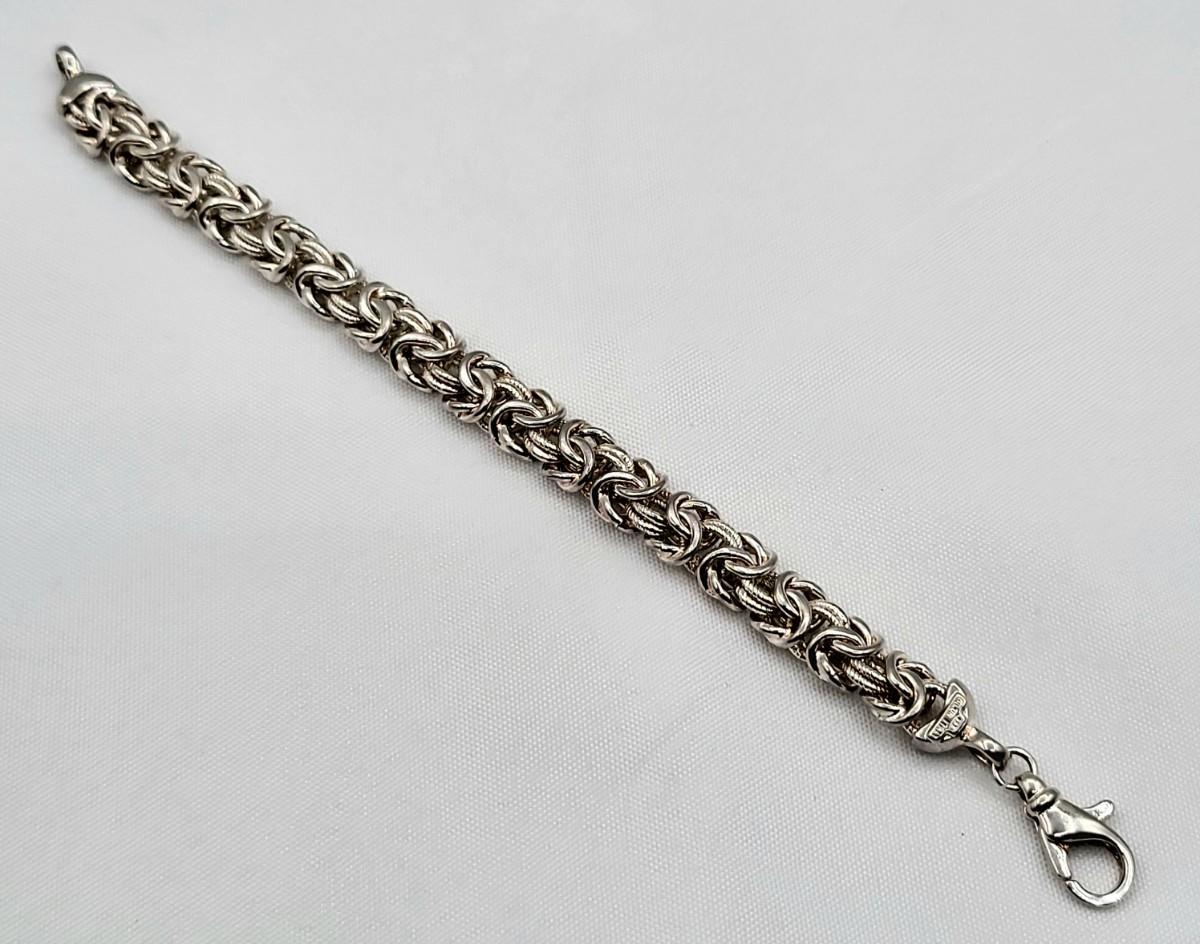 Byzantine link bracelet, stamped 925 Milor Italy, measures 6.75" long and 10mm wide. Weighs 19.16 grams.