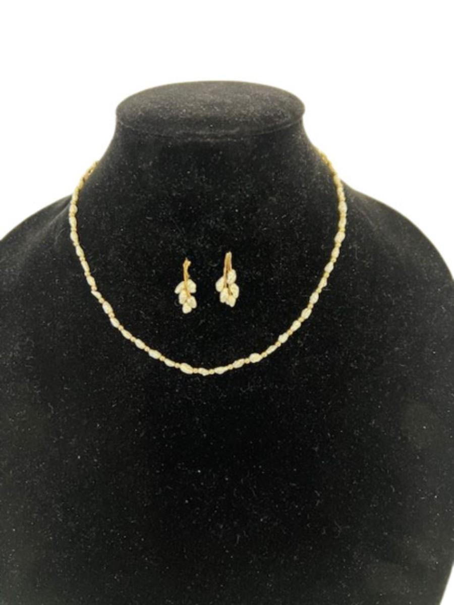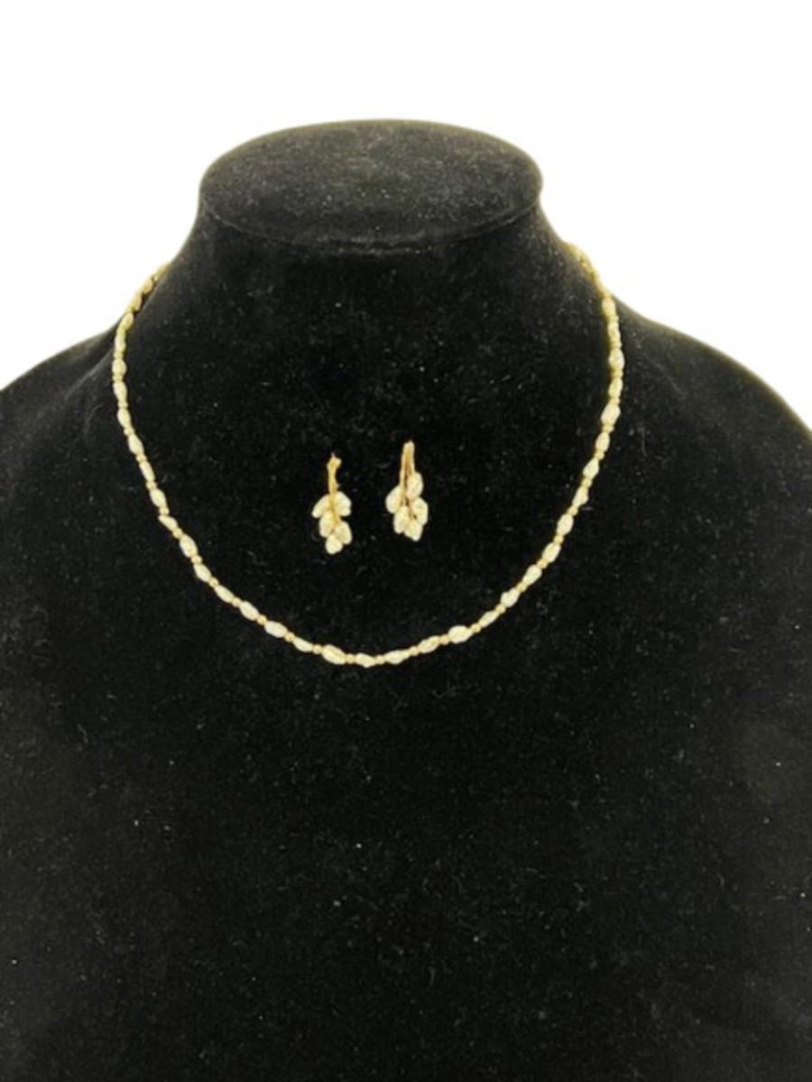 **WIRE TRANSFER IS REQUIRED IF SHIPPED.** [6.07g] Freshwater pearls. Includes a necklace and a pair of earrings. Measurement of necklace: 17"L. Gold content confirmed using Niton XRF precious metals analyzer. [ST]