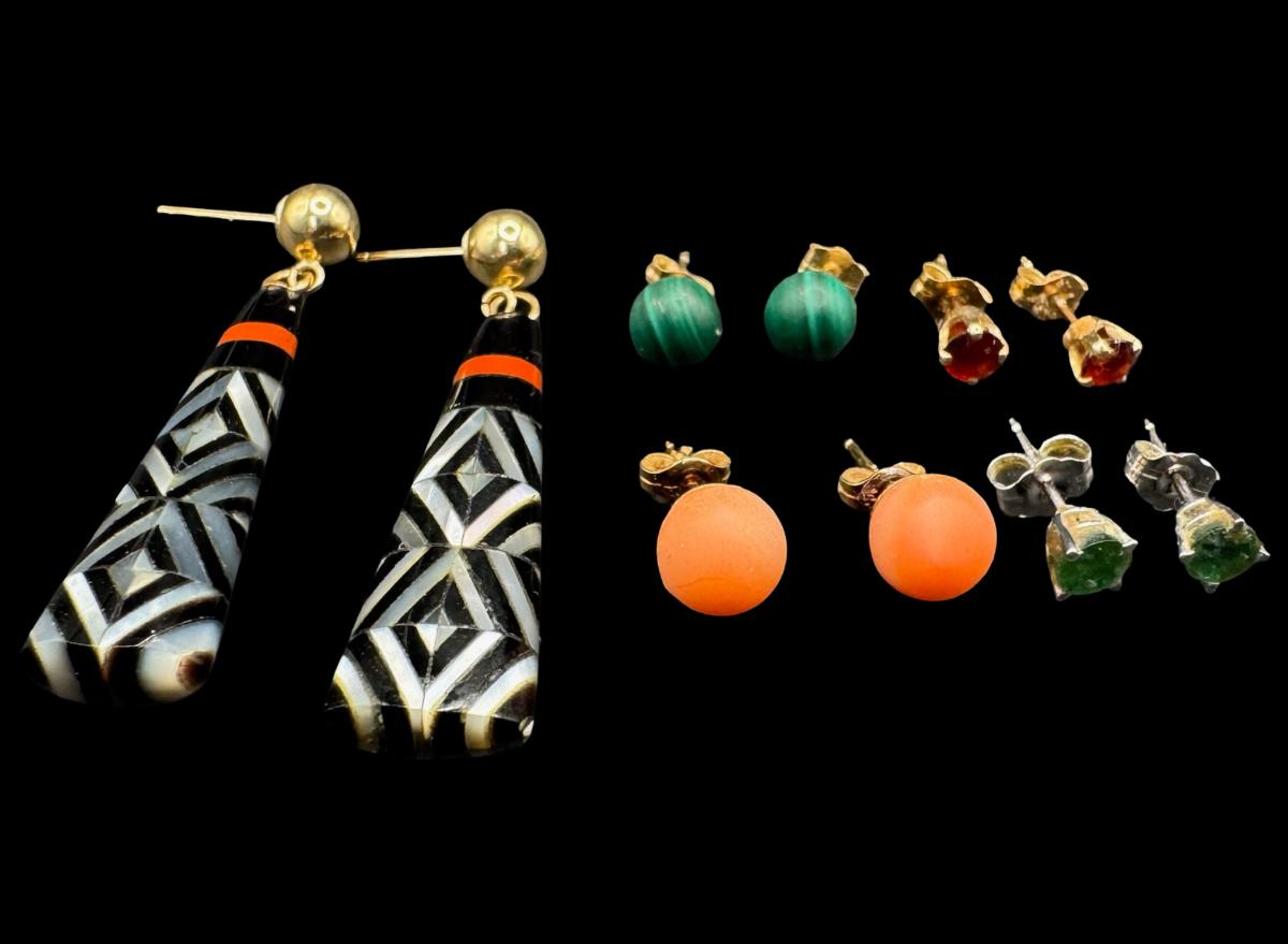 **WIRE TRANSFER IS REQUIRED IF SHIPPED.** [8.66g] Total of five pairs. Various styles. Gold content confirmed using Niton XRF precious metals analyzer. **ALL PRECIOUS METALS SALES ARE FINAL. NO REFUNDS WILL BE GIVEN FOR ANY REASON.** [JL]