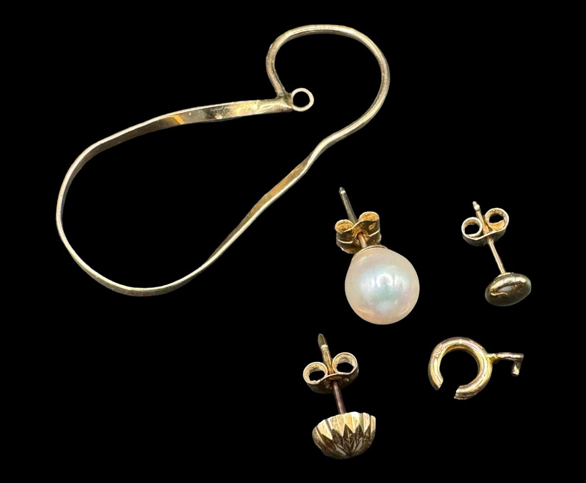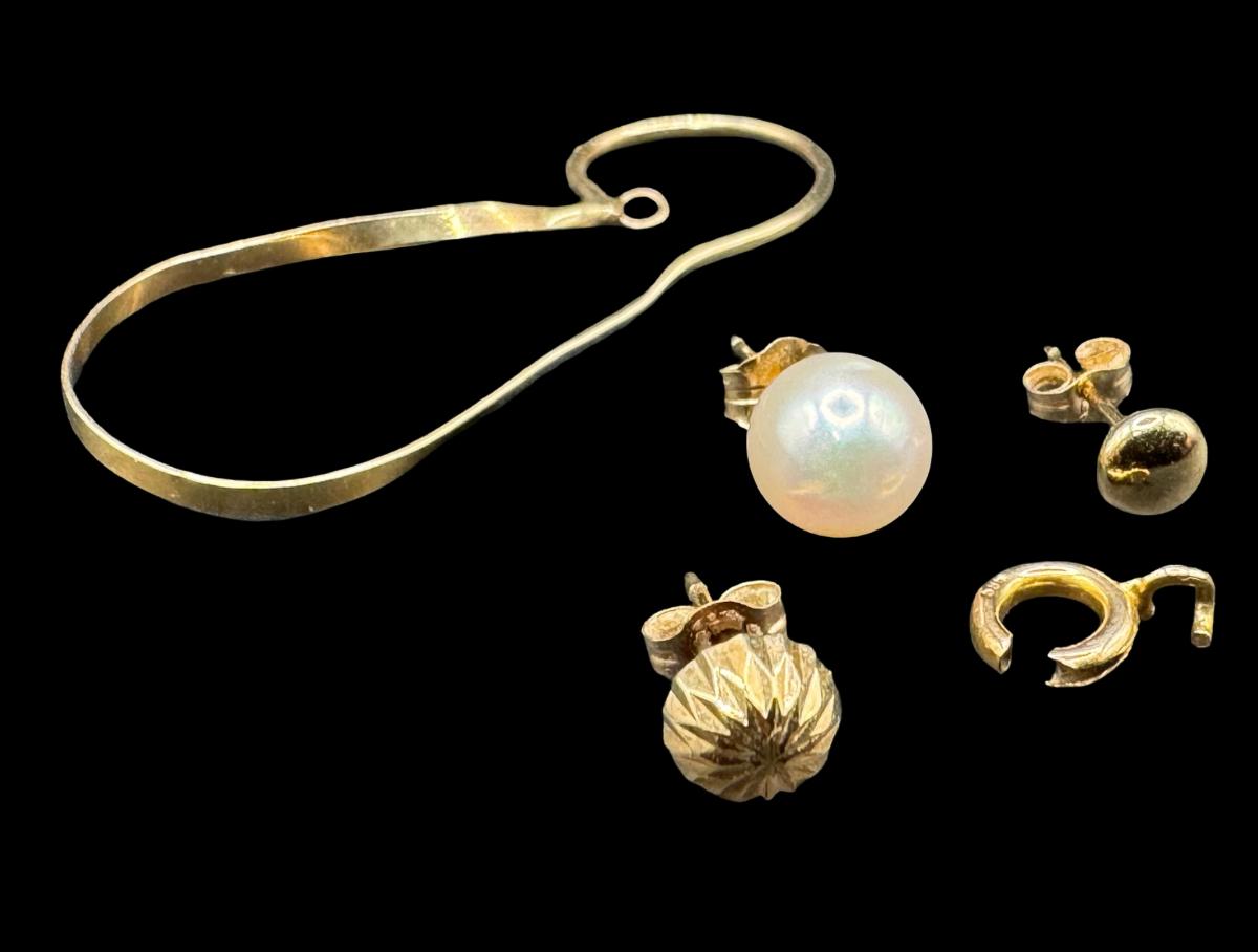 **WIRE TRANSFER IS REQUIRED IF SHIPPED.** [1.92g] Includes three single earrings, and more. Gold content confirmed using Niton XRF precious metals analyzer. **ALL PRECIOUS METALS SALES ARE FINAL. NO REFUNDS WILL BE GIVEN FOR ANY REASON.** [JL]