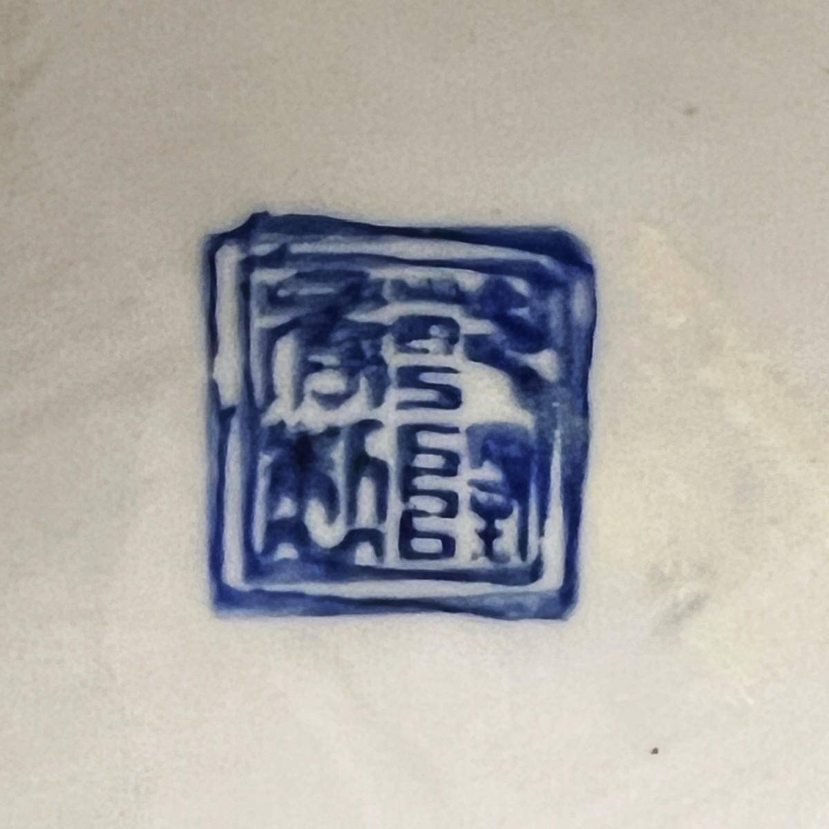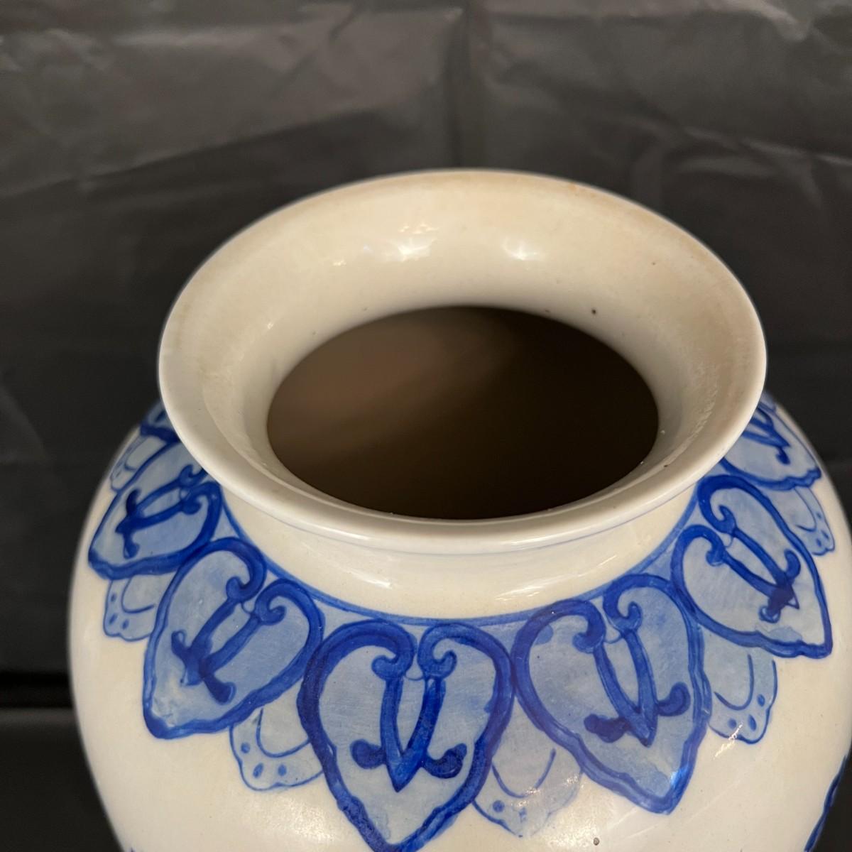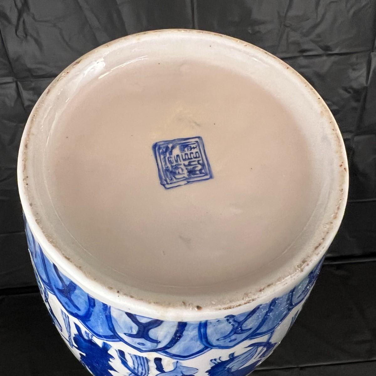 Stamped Chinese Vintage Blue and White Floral Gazed Vase