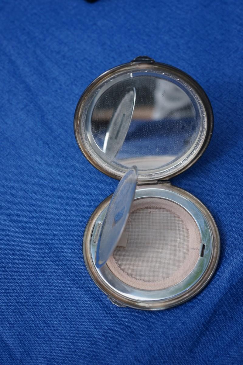 1940's plus silverplated compact. stamped made in Denmark and at the clasp Plated.