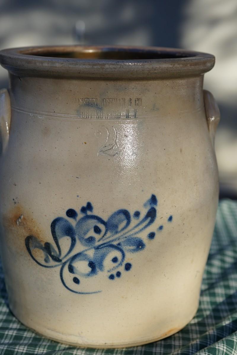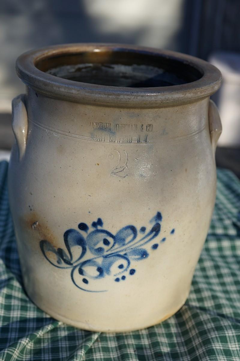 STAMPED MAXSTUN OTTMAN &CO FORT EDWARD NY 2 GALLON HANDLED CROCK