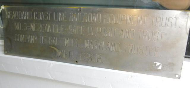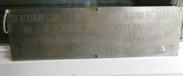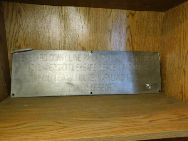 Stamped Steel Seaboard Coast Line Rail Road Equipment Deposit & Trust Sign Maryland Trust Company 22"x7"