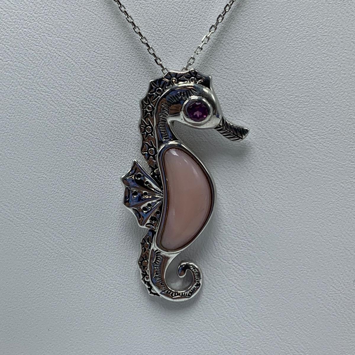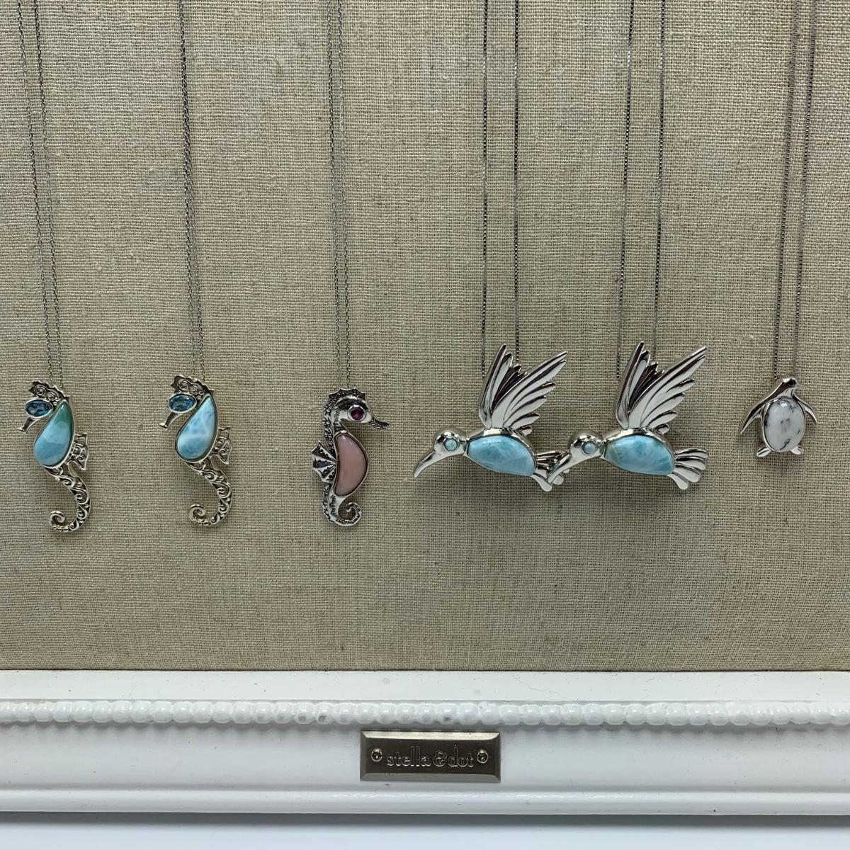 Stamped Sterling and Gemstone Seahorse, Hummingbird, and Penguin Necklaces with Selection of Gemstone Animal Pendants (B3-KW)