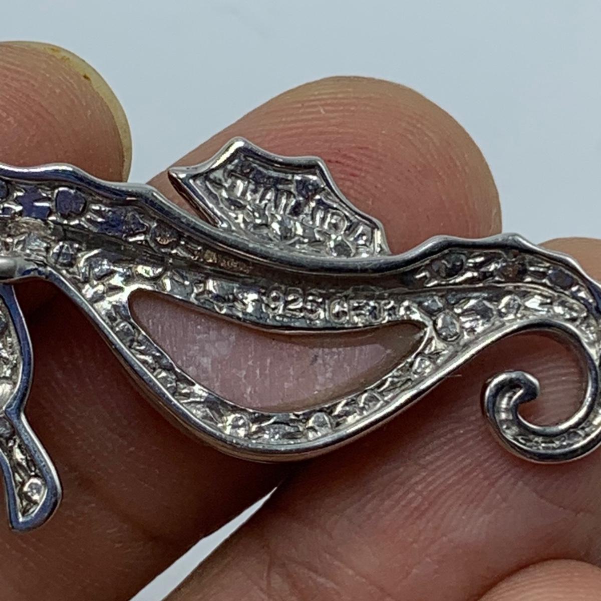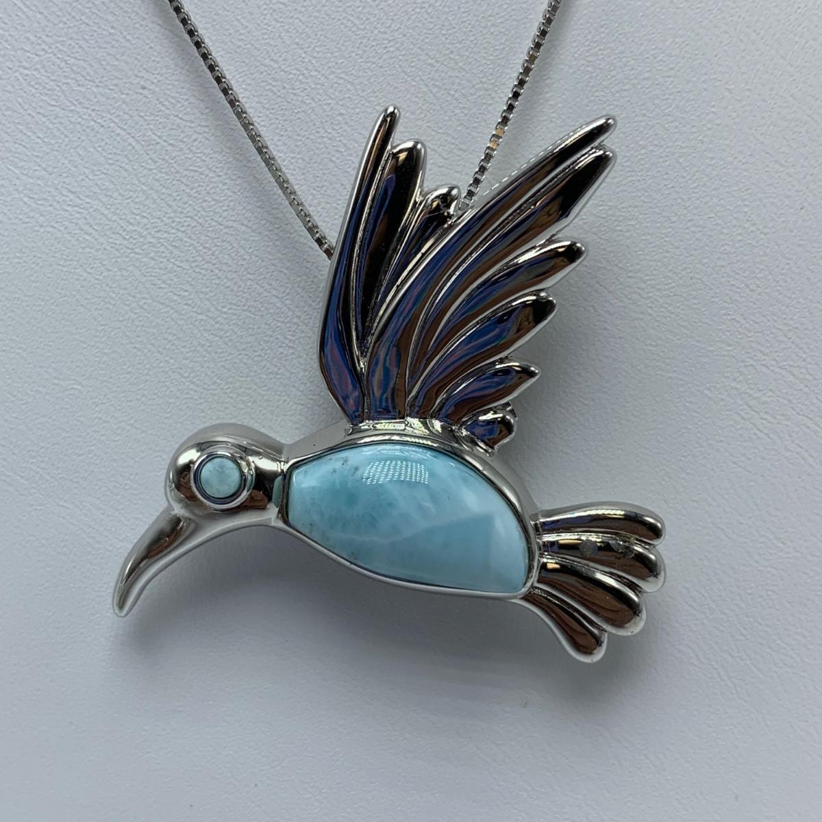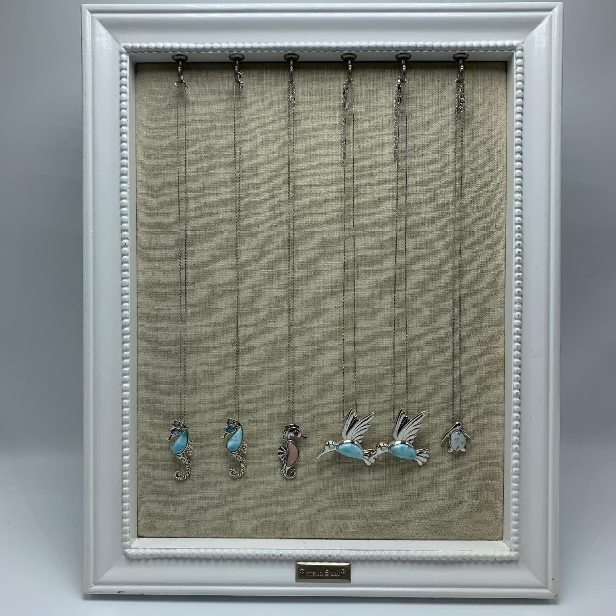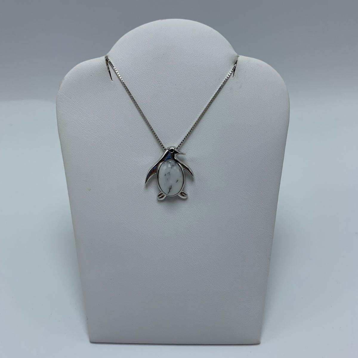Lovely collection of necklaces and pendants. Lot includes two blue gemstone seahorse necklaces, one pink gemstone seahorse necklace, two blue gemstone hummingbird necklaces with adjustable chain, one adjustable turquoise colored seahorse ring (shown in photos as size 9), and one penguin necklace. Of the necklaces above, both pendants and chains are stamped 925. Lot also includes selection of pendants featuring four gemstone turtles and four gemstone seahorses. These pendants are not stamped. Seahorses necklace chains measure, 18” and hummingbird chain measures 19.5” and is adjustable. All sales are final. No returns or refunds. Please bid accordingly.