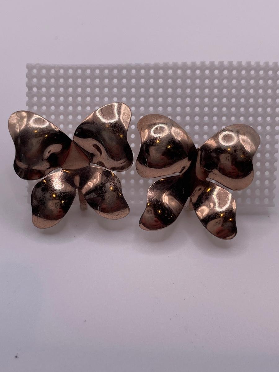 Stamped sterling vermeil bow screwback earrings
