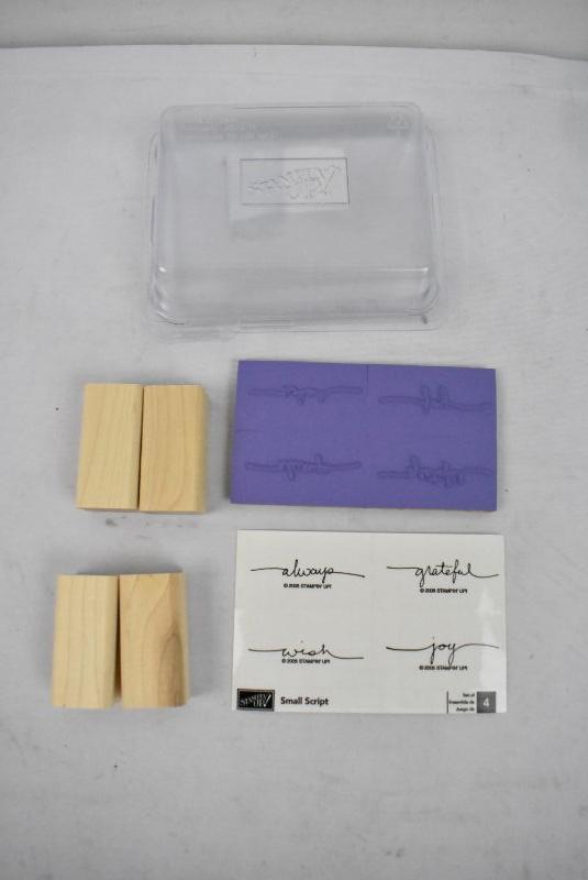 Stampin' Up! Small Script Unmounted Retired Wooden Rubber Stamp Set of 4 - New