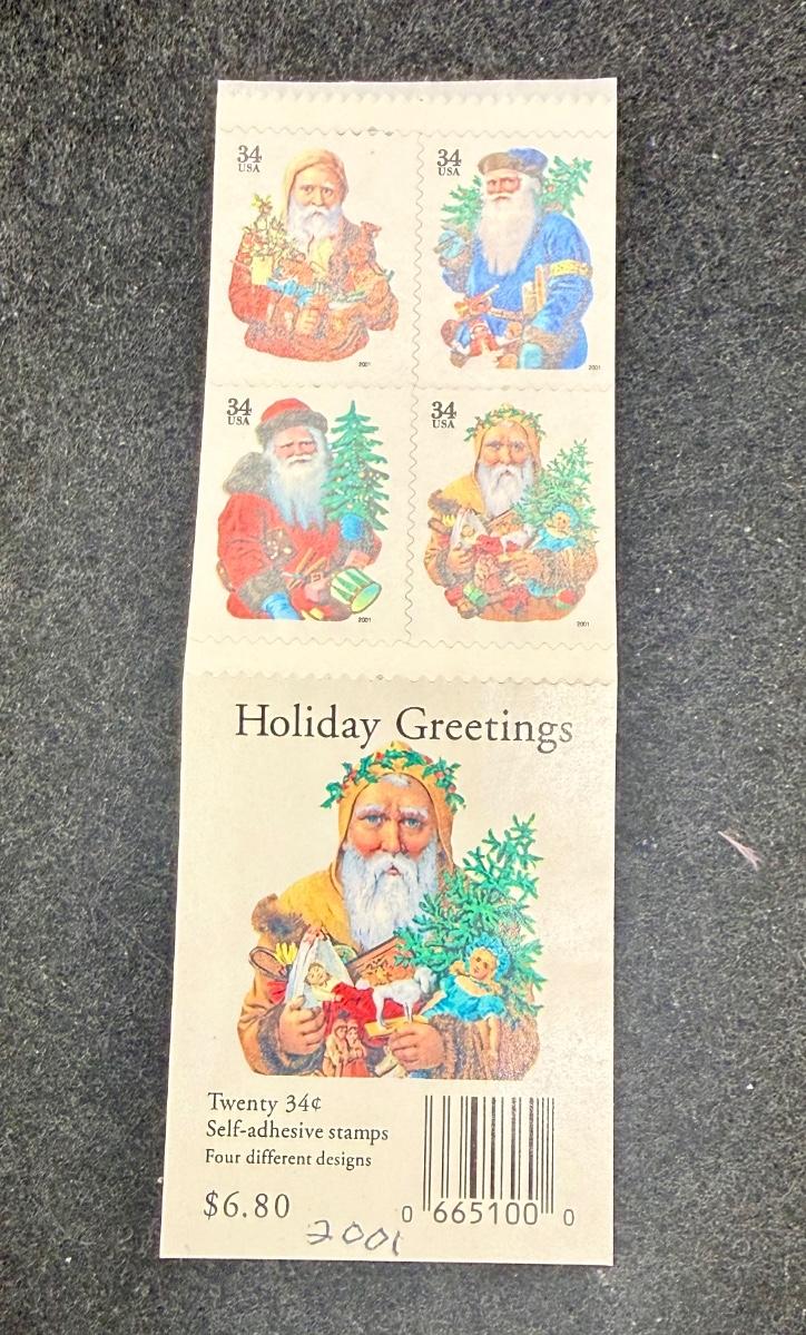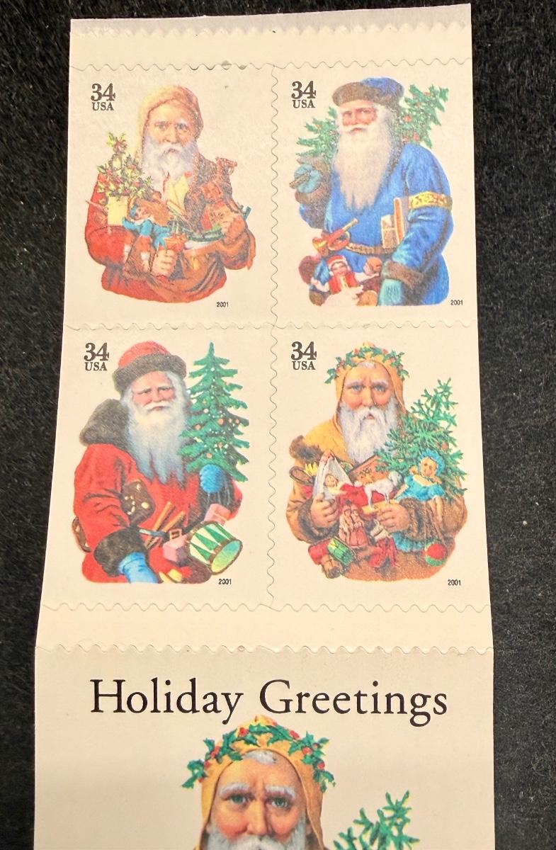 2001 34c Holiday Santas Stamps