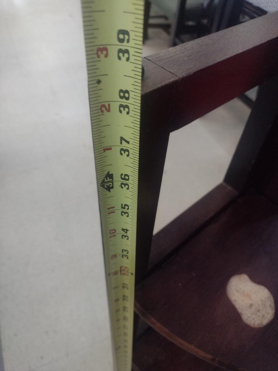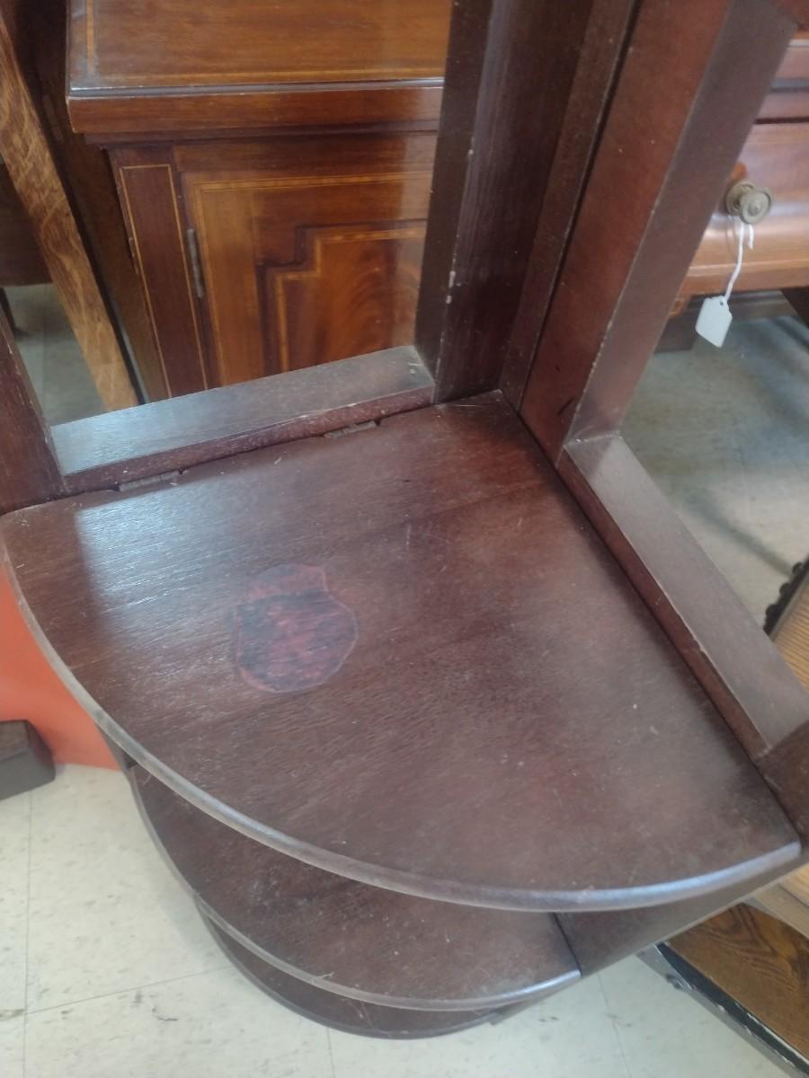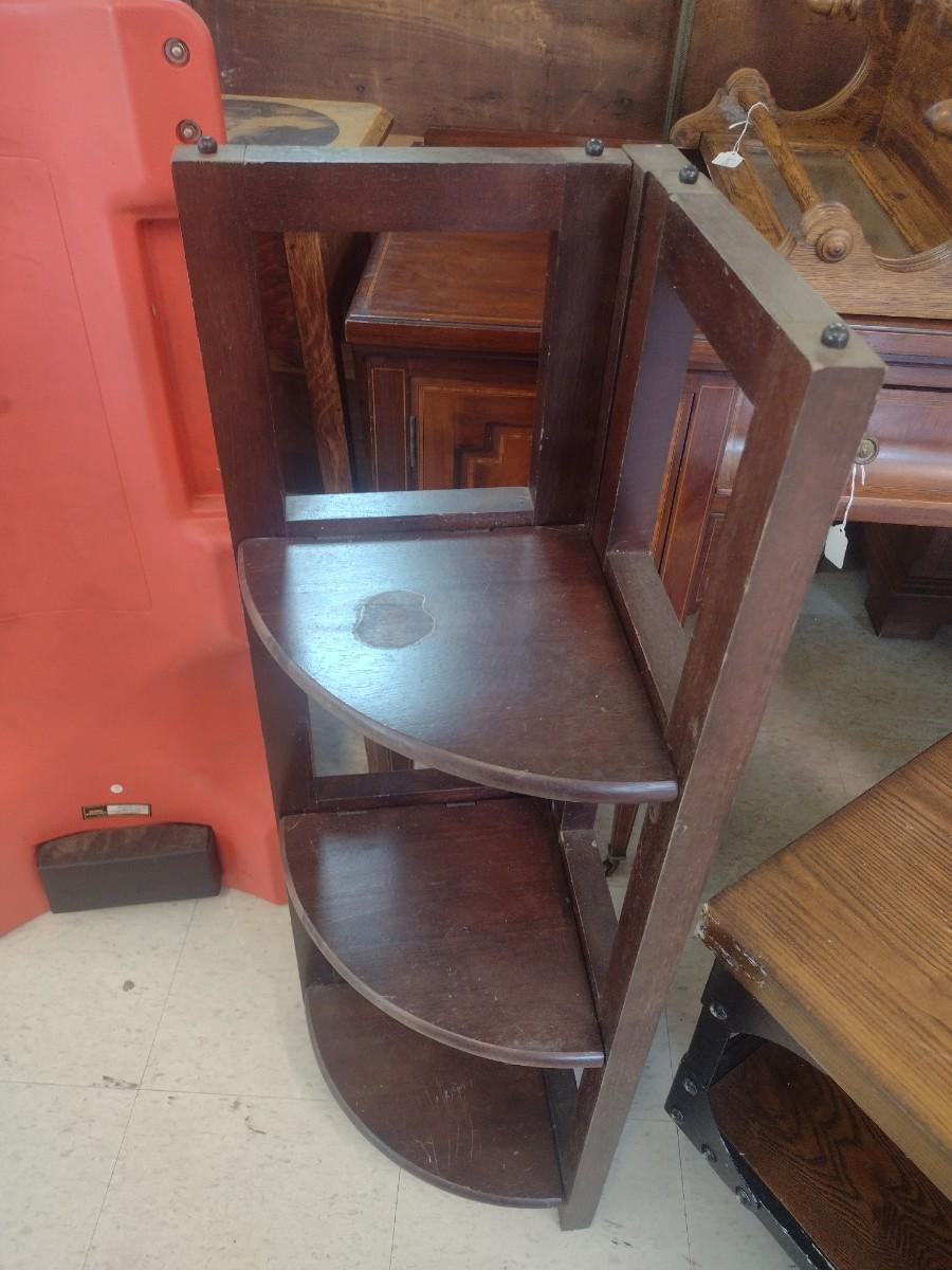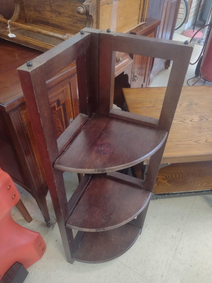 Folding Three Shelf Stand. Top shelf has water mark repair as shown.
