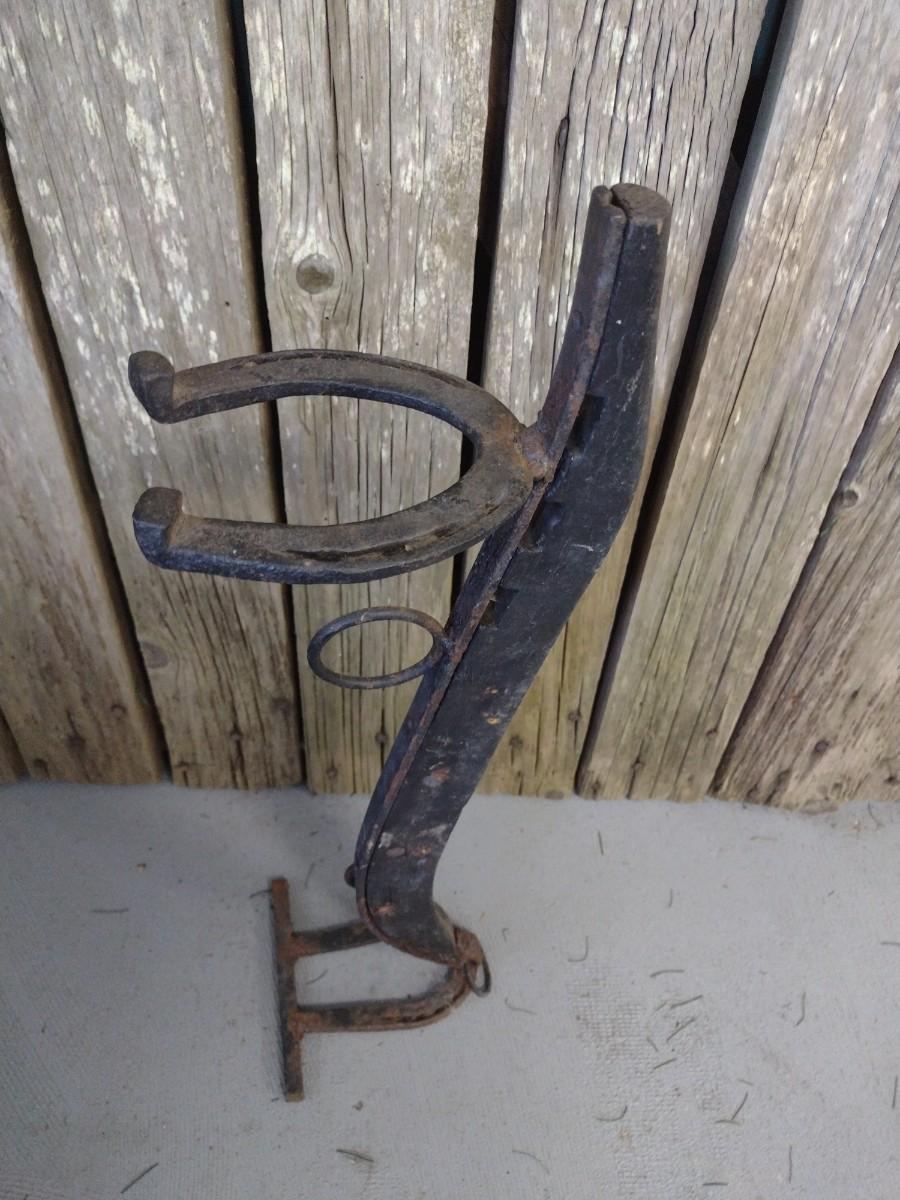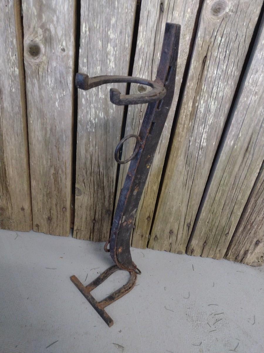 Folk Art Stand Made from Wood Hames and Horseshoes