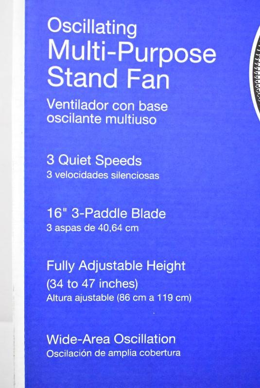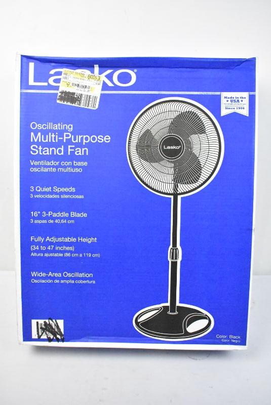 Stand Fan by Lasko, Oscillating, Adjustable Height, Black - New