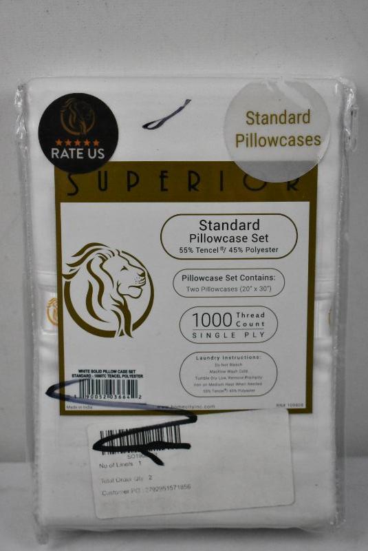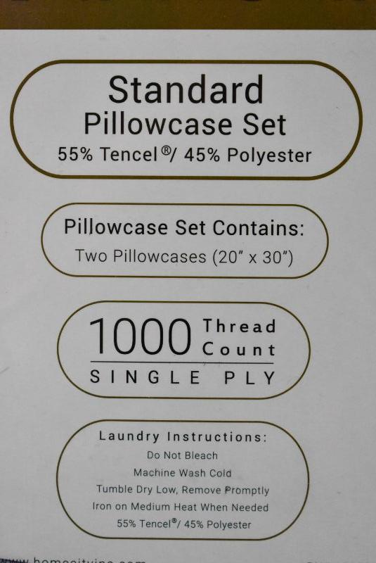 Standard Size Pillow Case Set of 2, White. Impressions 1000 TC Tencel - New