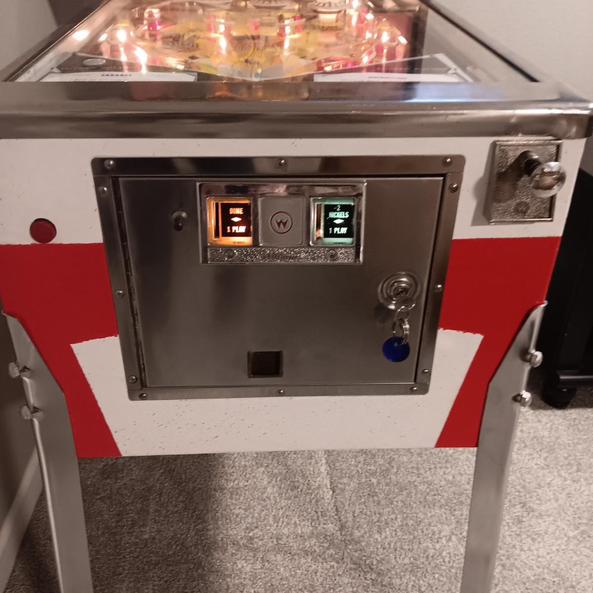 WE PLAYED IT AND IT WORKS GREAT! YOU DO NOT HAVE TO USE QUARTERS IF YOU DON'T WANT TO. KEY TO COIN BOX IS INCLUDED. OUR CLIENT SAID THAT SOMETIMES THE PLAYER 1 REEL STICKS, IT WILL RESET WHEN IT'S POWERED OFF AND BACK ON A FEW TIMES. THERE ARE EXTRA BUMPER GUARDS AND LIGHT BULBS