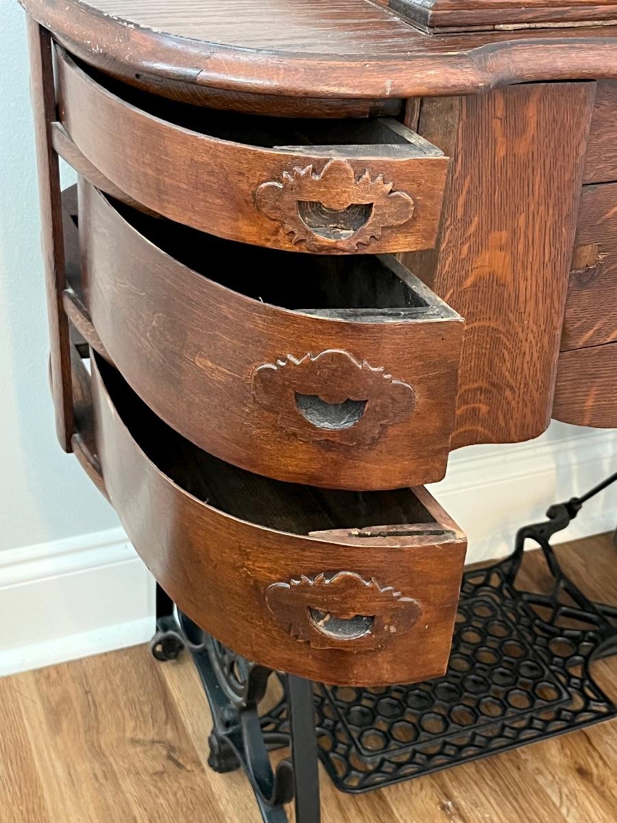 Sewing machine included but doesn’t work sold as-is ~ 31” H x 34” W x 17.5” D