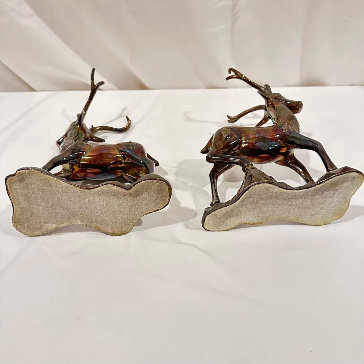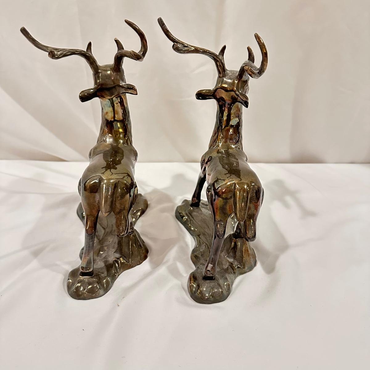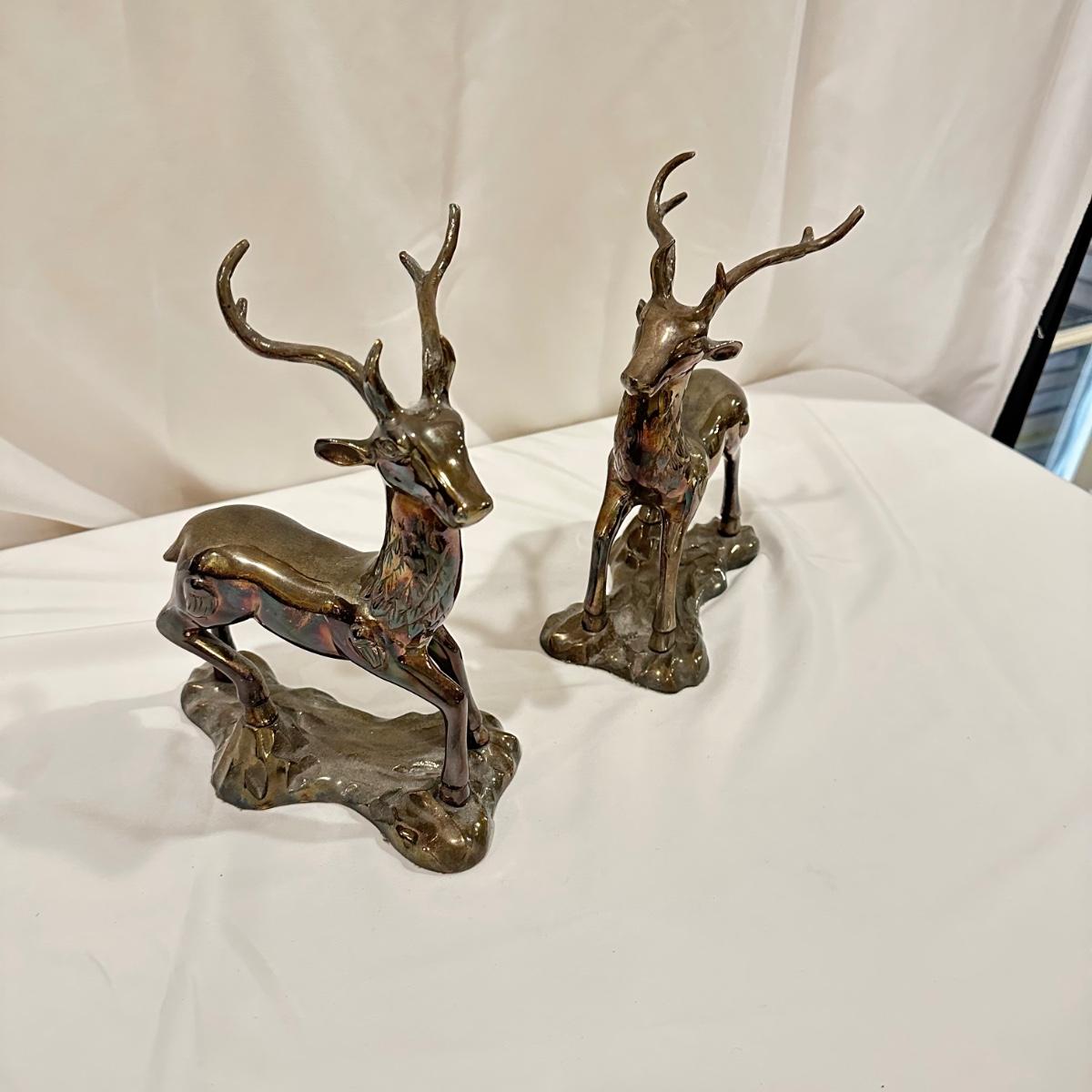 Pair of standing brass deer. Measures 7.5” x 4” x 10”H. Shipping available. (SR-KL)