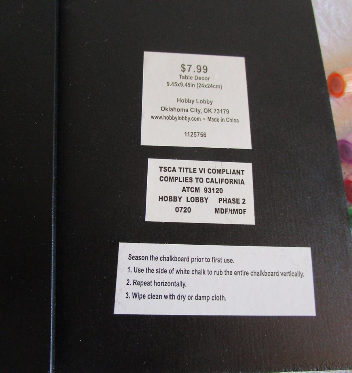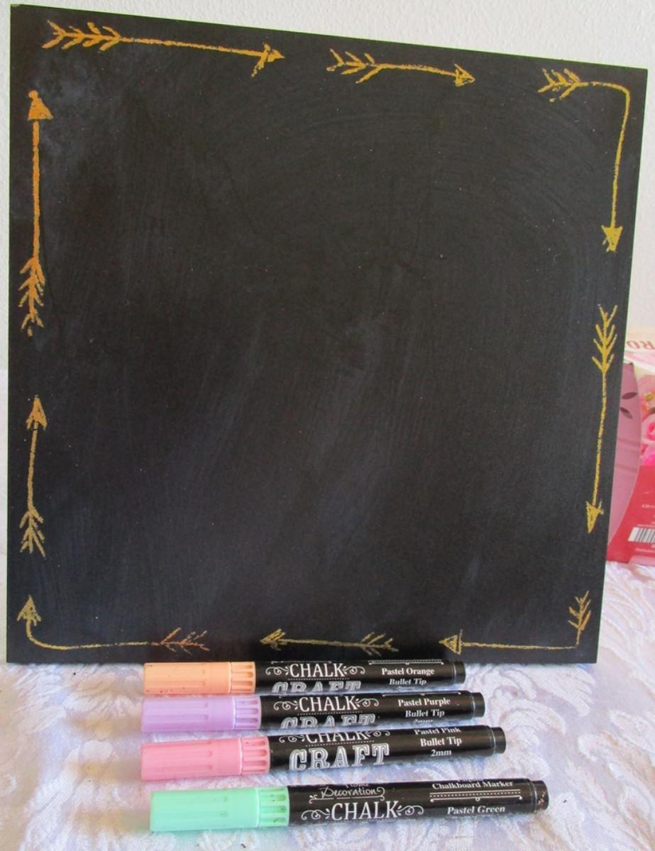 Standing decorative chalkboard & 4 chalk pencils