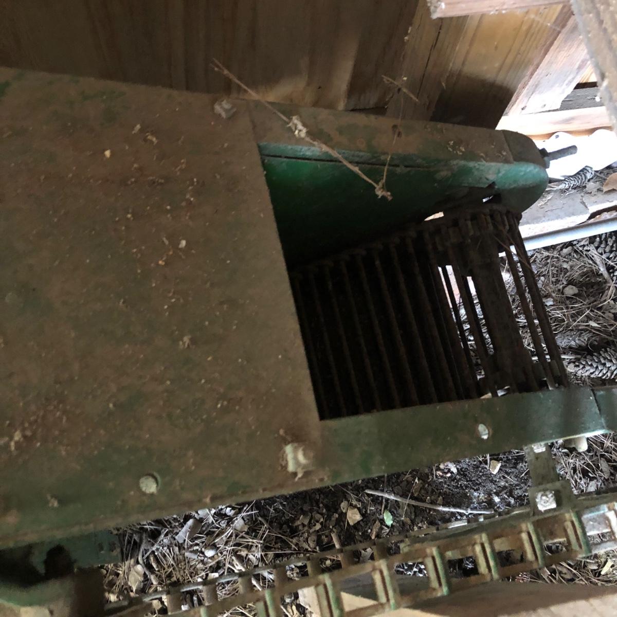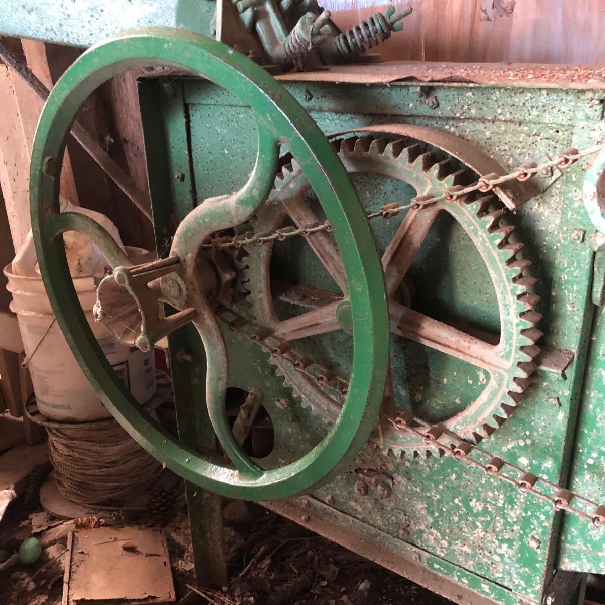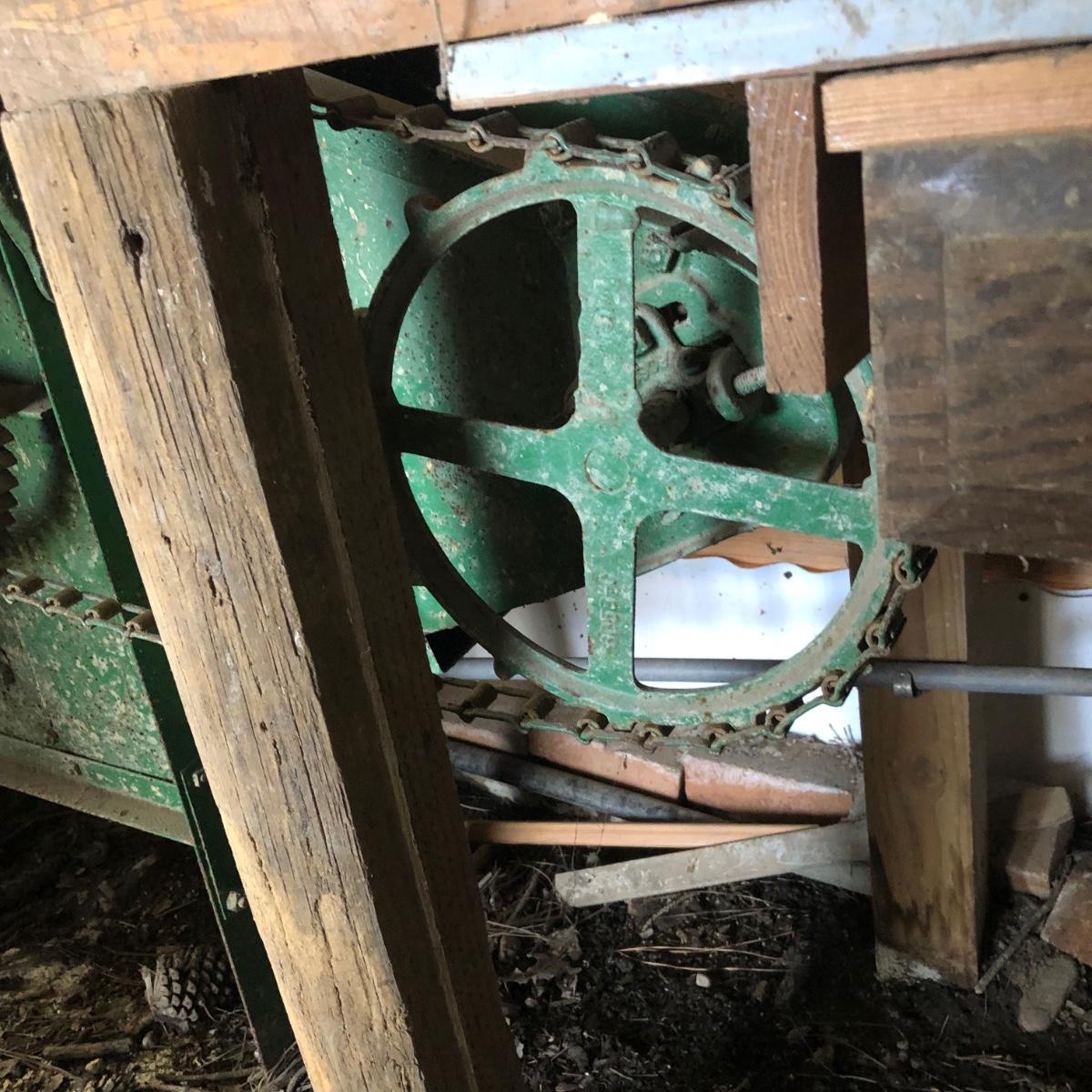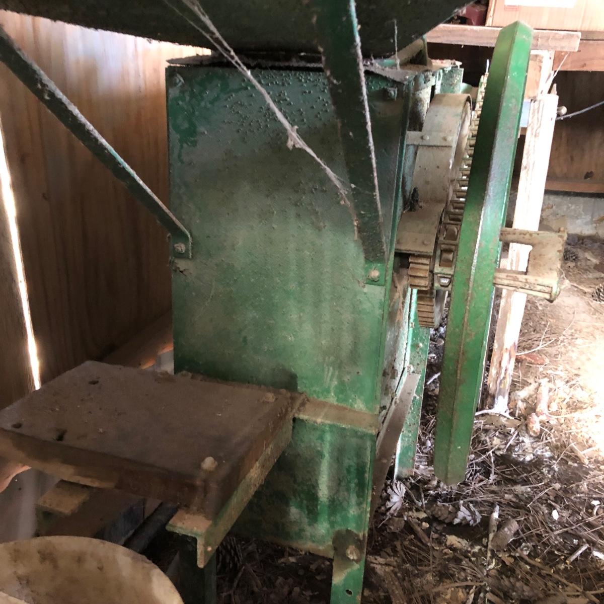 This grinder seems to be in working condition as the outside wheel turns and moves connecting parts. Machine is iron and metal. It measures approximately 67” long x 25” wide (tray at top) and stands 45” tall (at tallest point). Bring help to move as it is substantial. Local pick up only.