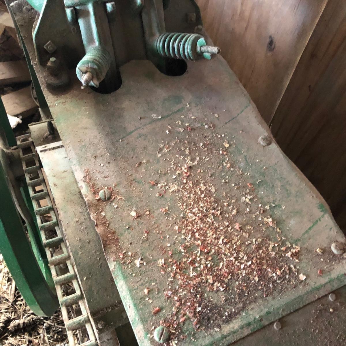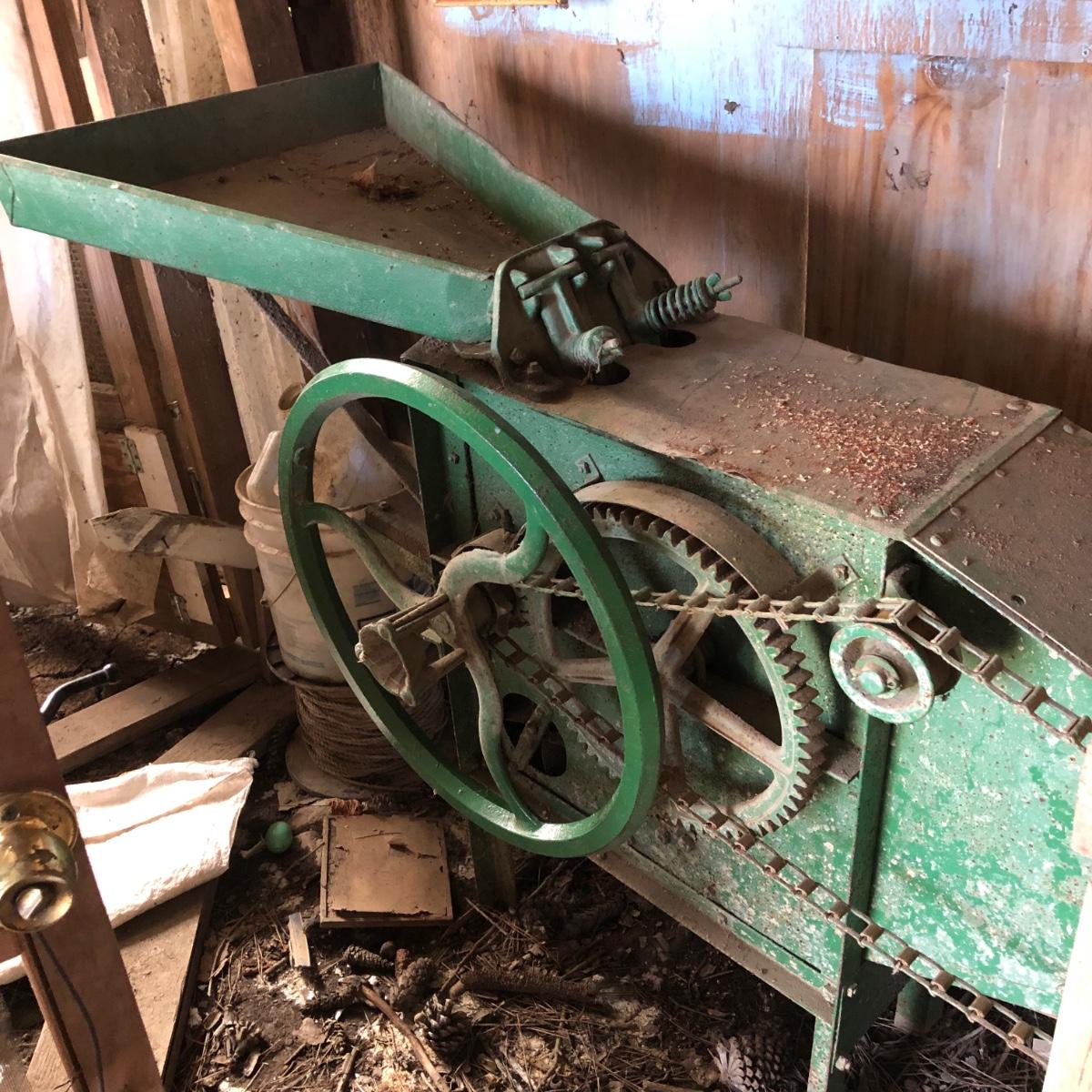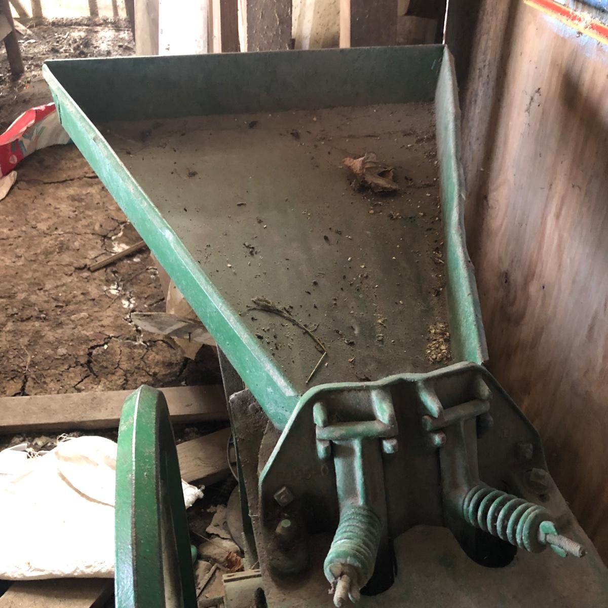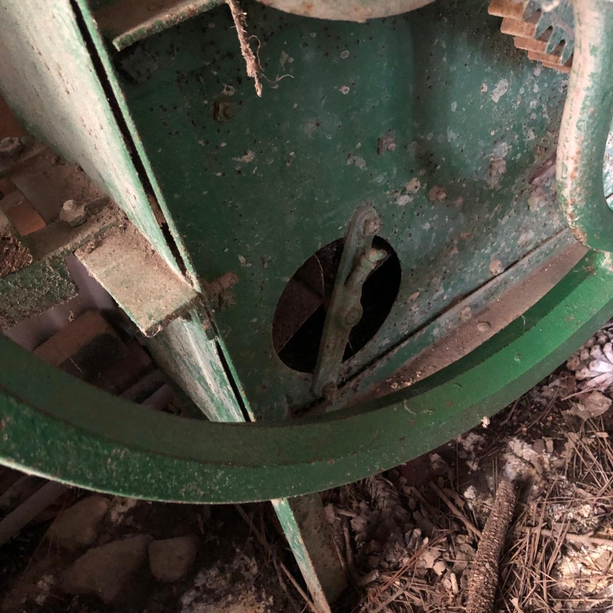 This grinder seems to be in working condition as the outside wheel turns and moves connecting parts. Machine is iron and metal. It measures approximately 67” long x 25” wide (tray at top) and stands 45” tall (at tallest point). Bring help to move as it is substantial. Local pick up only.