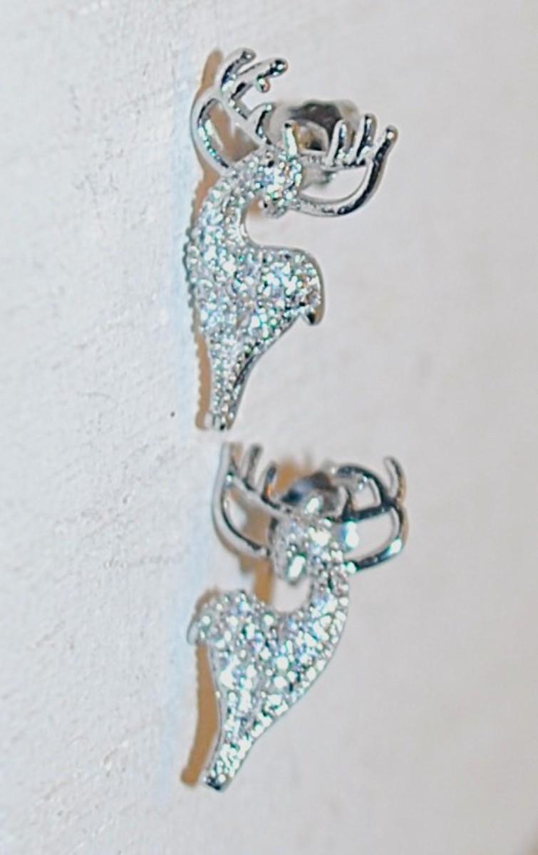 Standing Sparkly Clear Stones ELK Earrings Set (¾") with Stud Style Clasp