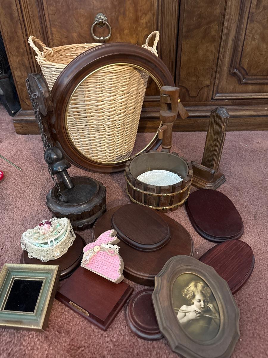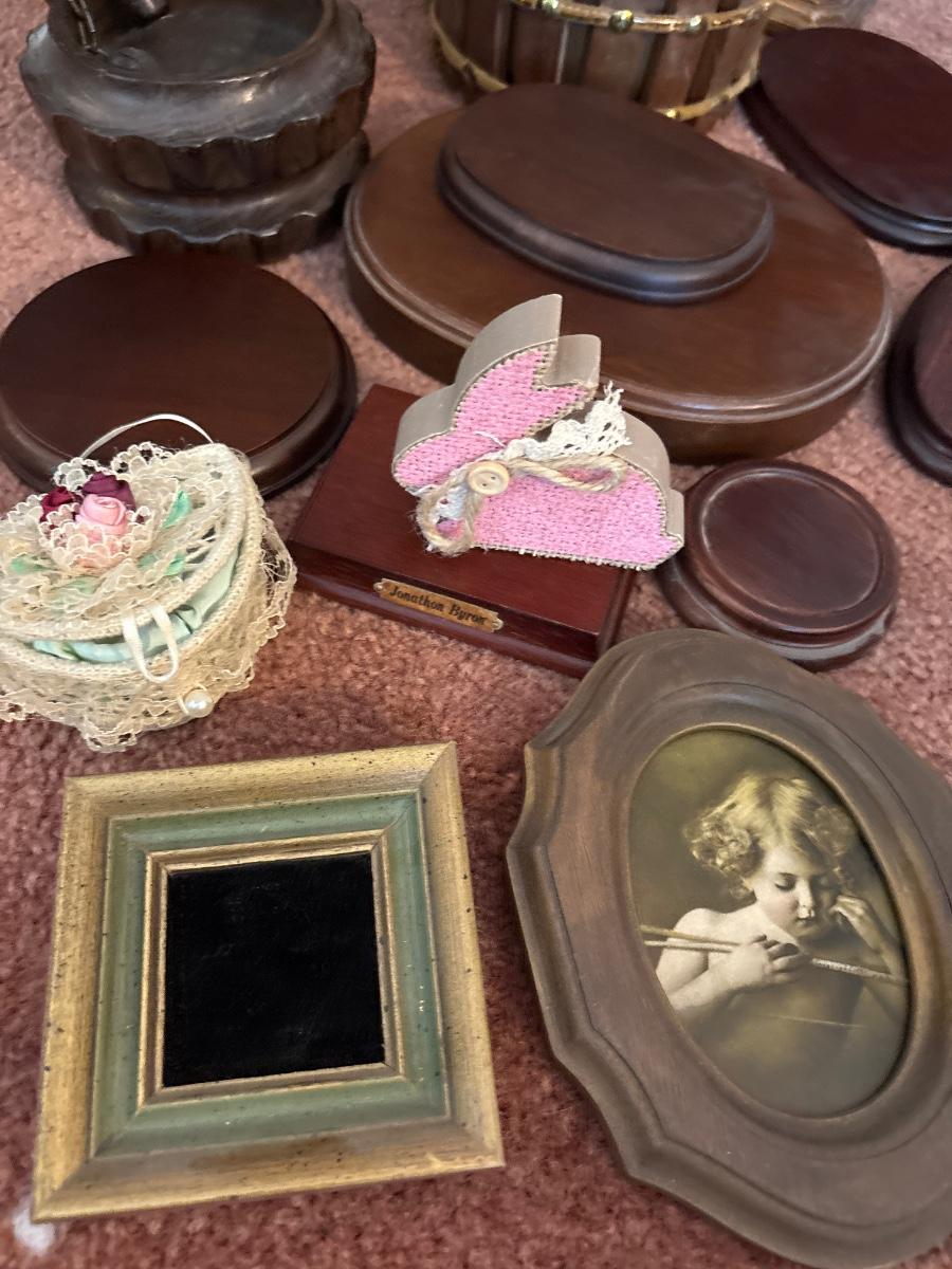 Stands for figurines, wood wishing wells, etc
