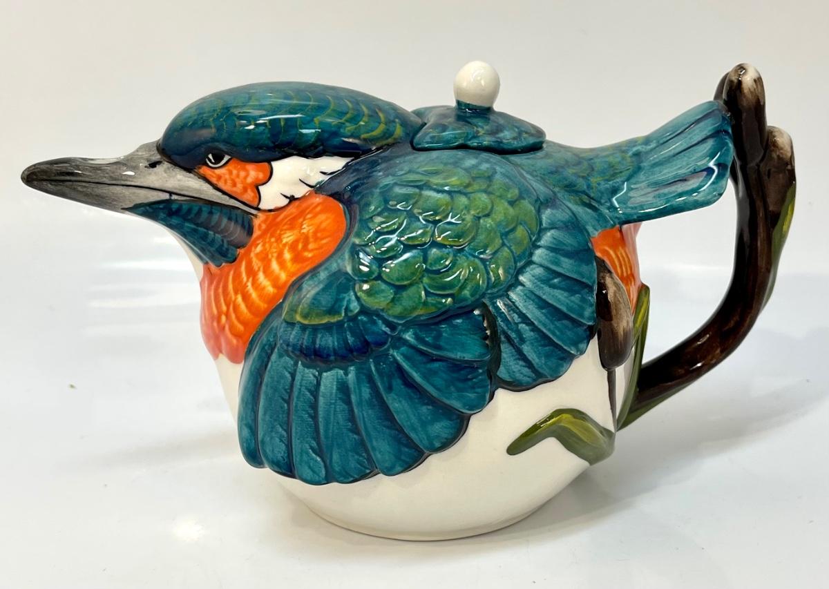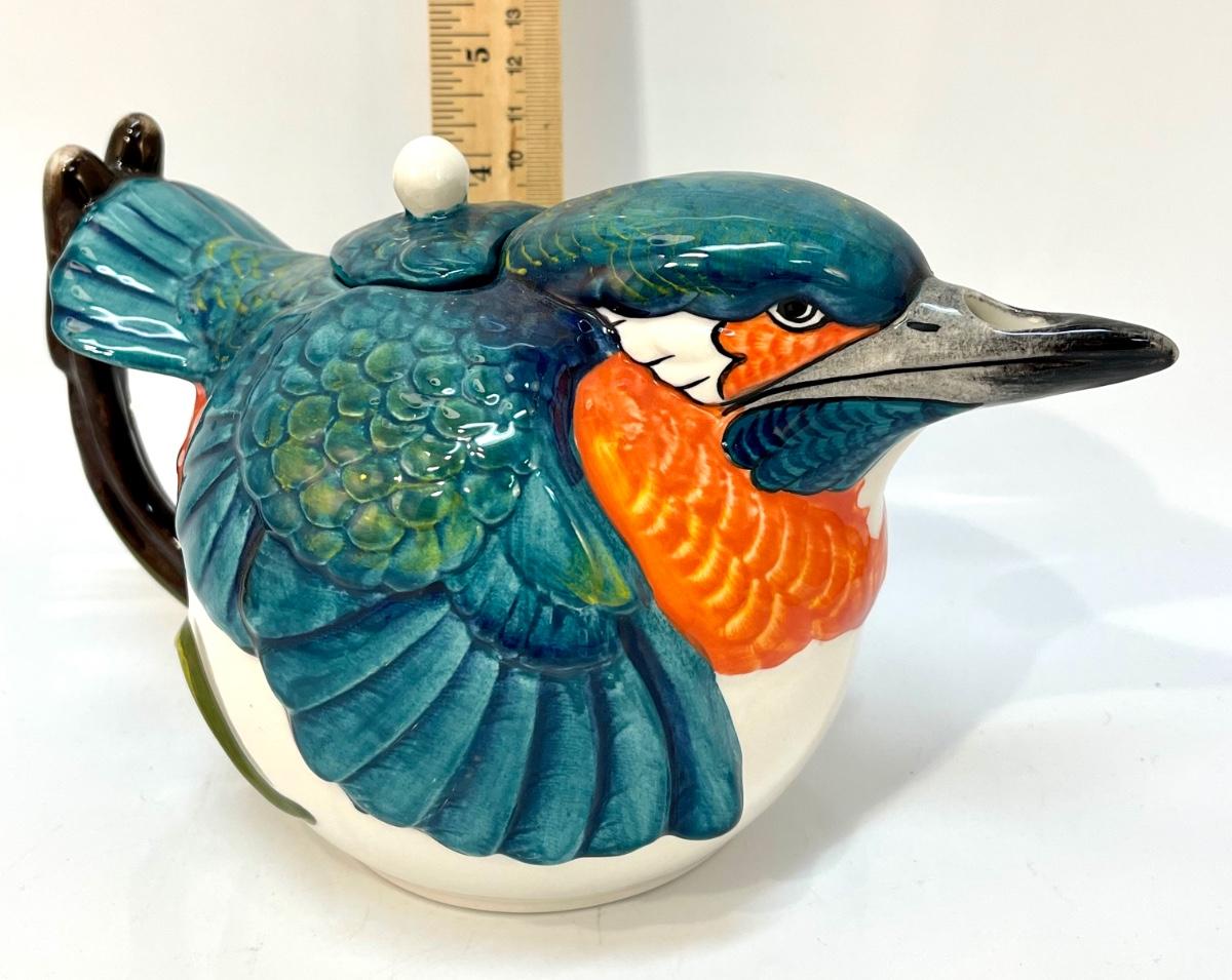 Stanfordshire Fine Ceramics Woodland Birds Kingfisher Hand Painted Ceramic Teapot