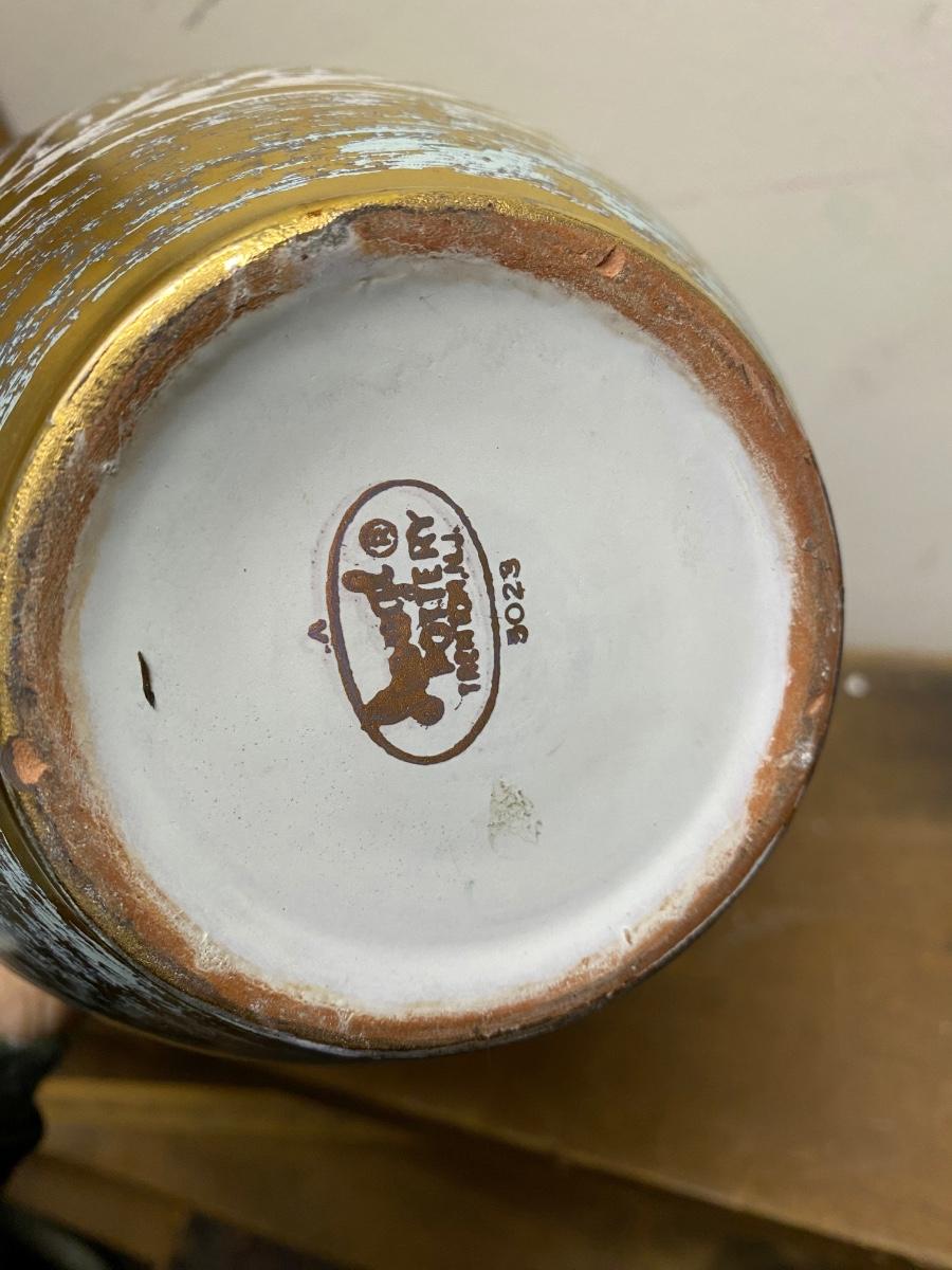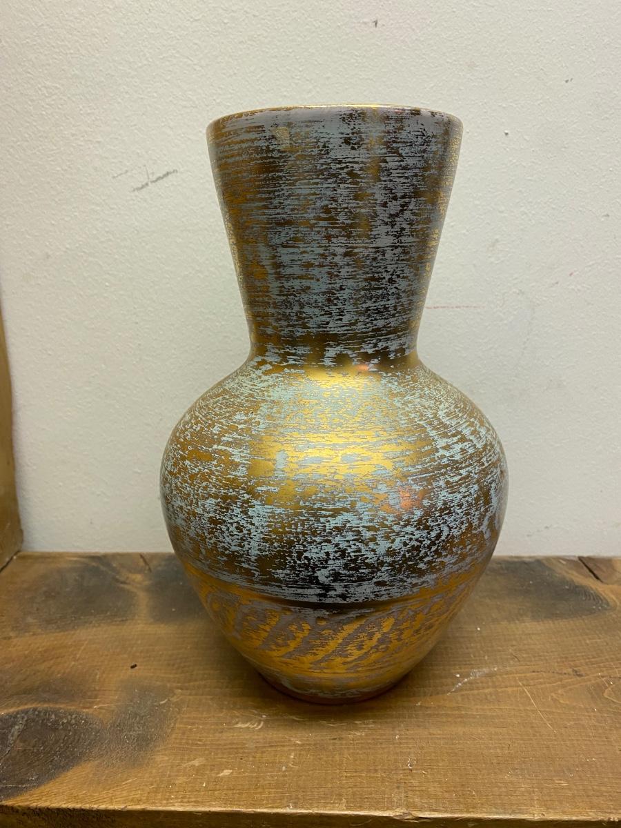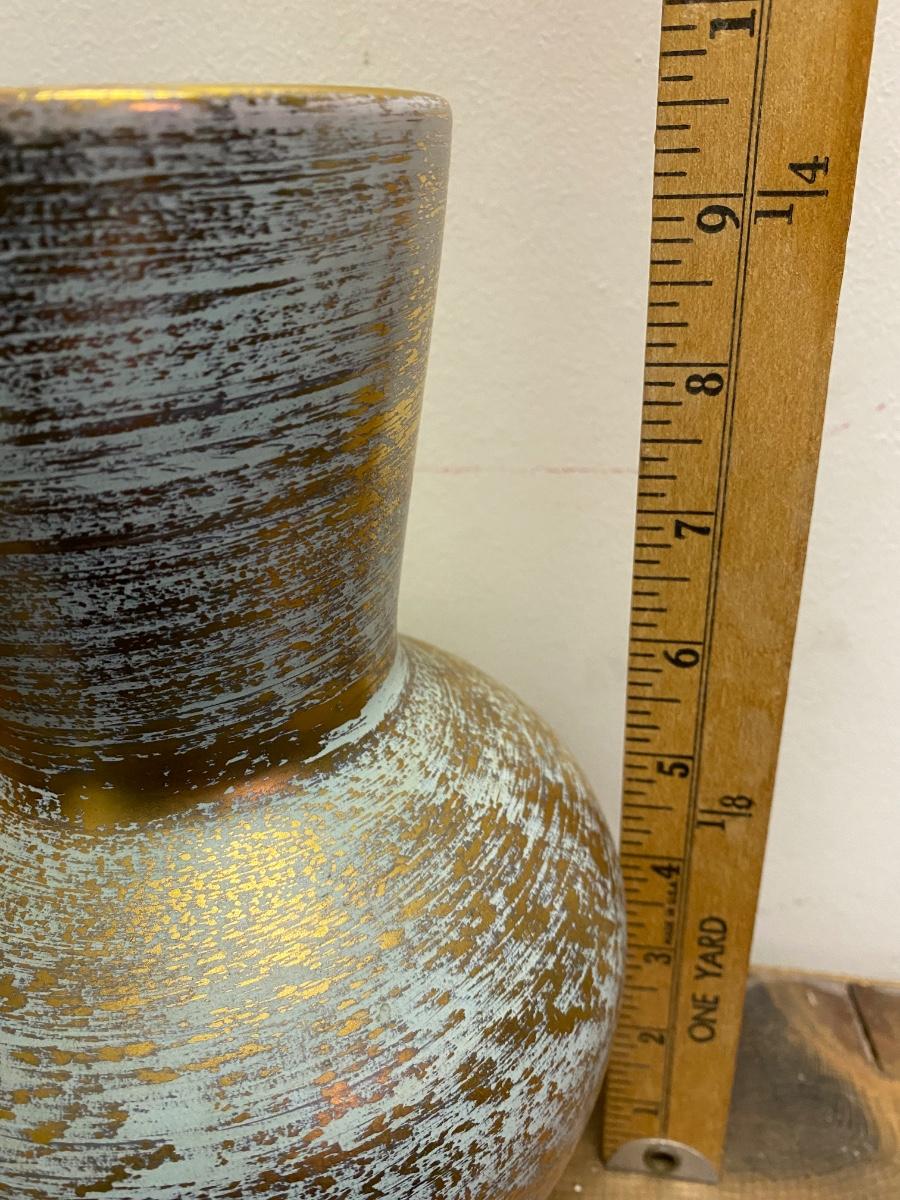 This Stangl Pottery Antique Gold Vase #5023 measures approximately 9 1/4" tall, 5 1/2" at its' widest and 4" at the opening