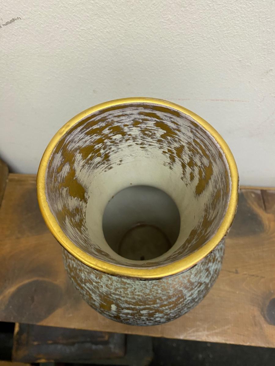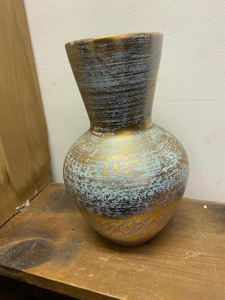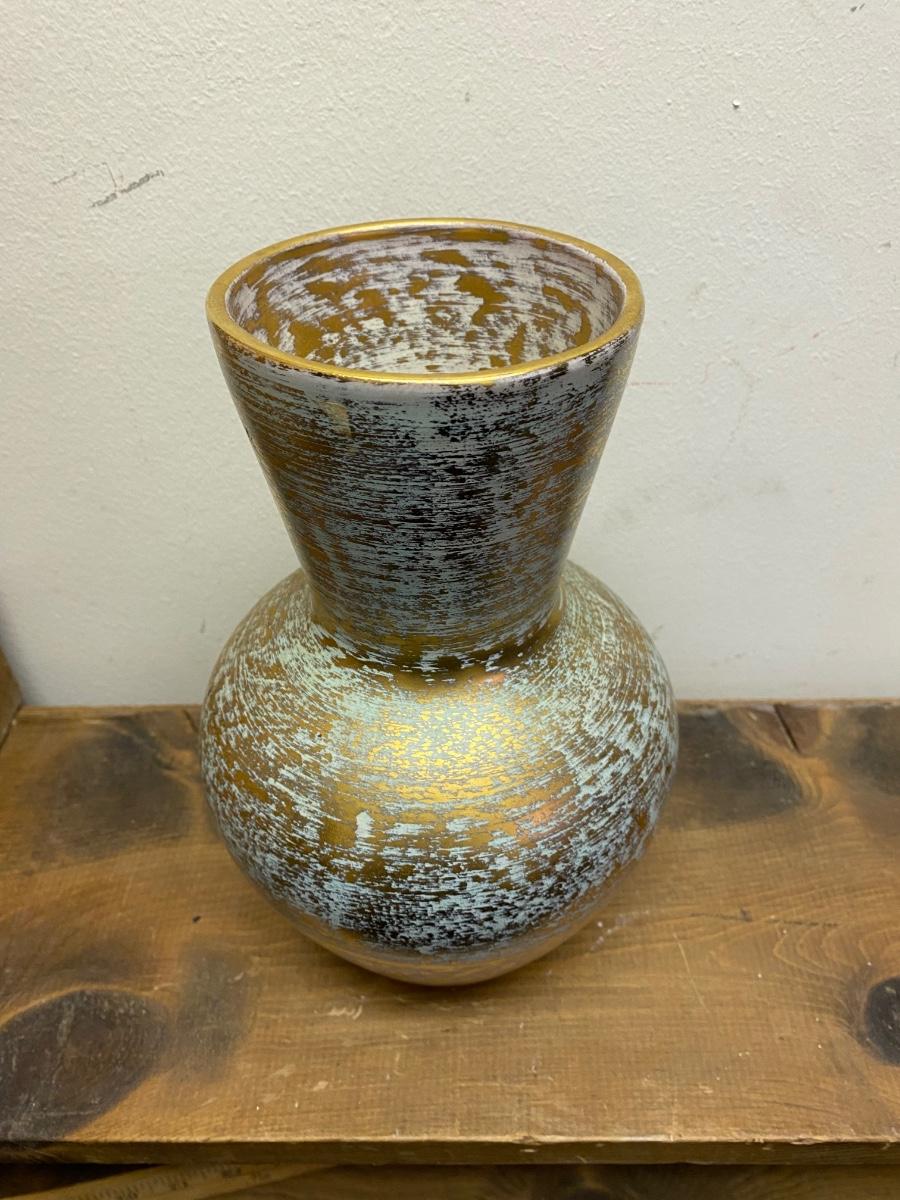 This Stangl Pottery Antique Gold Vase #5023 measures approximately 9 1/4" tall, 5 1/2" at its' widest and 4" at the opening