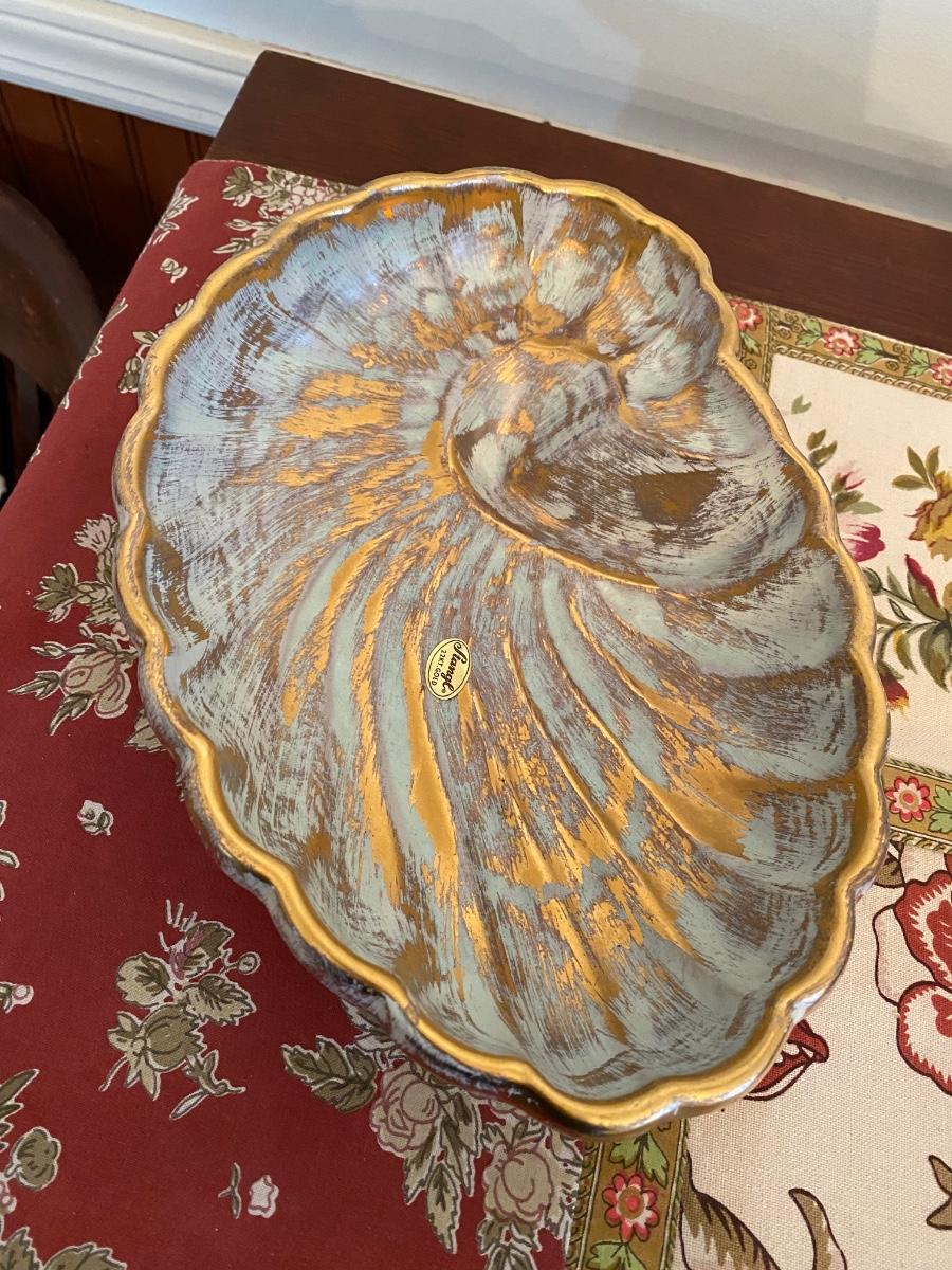 STANGL Pottery Hand Painted 22K Gold Shark Eye Snail Shell Dish 5314 . In like new condition with Stangl 22 kt gold sticker.