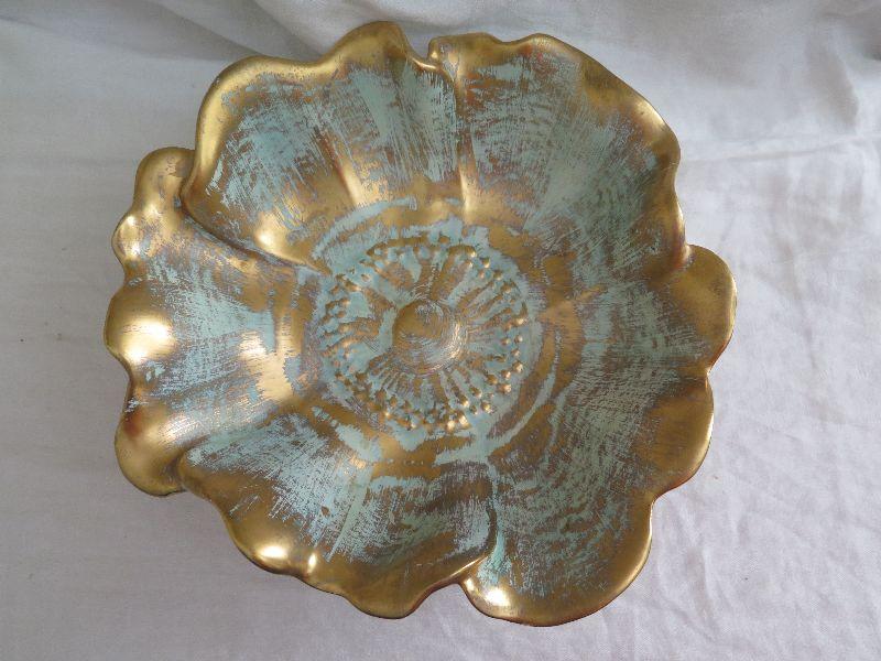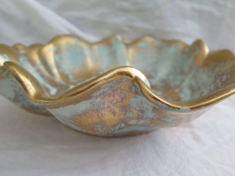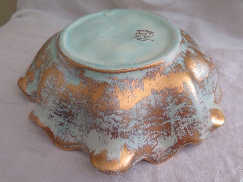 Stangle bowl with gold rub. 10 inches round. Please read Terms and Conditions before placing a bid. Pick up is Saturday, November 30 from 9am to 3 pm in Bridgeton, NJ. All sales are final. All sales are as is, where is. Please review all photos. Any props included in photos are not included in listing. All measurements are approximate.