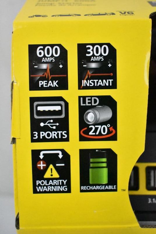 STANLEY 600/300 Amp 12V Jump Starter with LED Light and USB (J309) - New