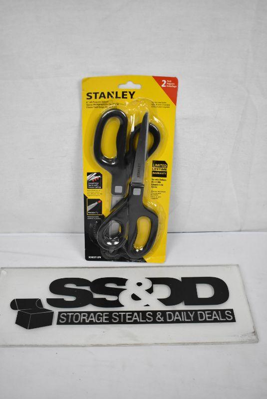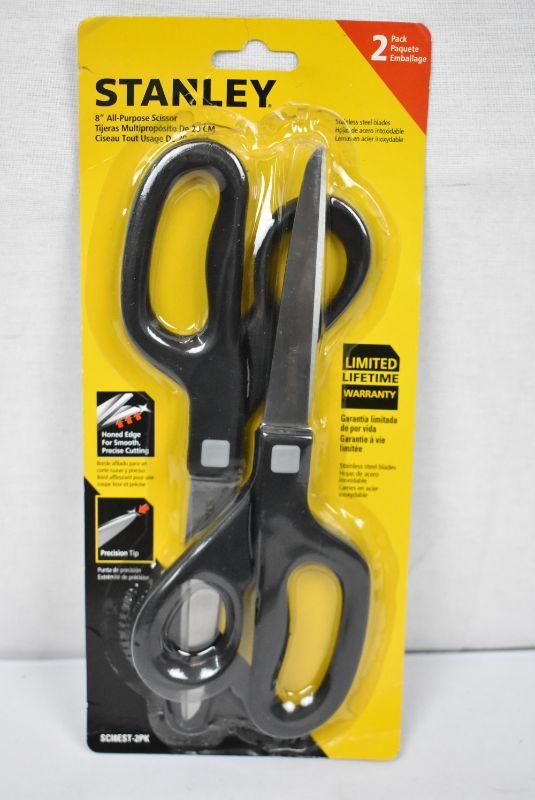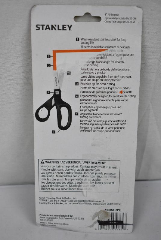 Stanley 8" All Purpose Scissor, 2 Pack, Black (SCI8ST-2PK) - New