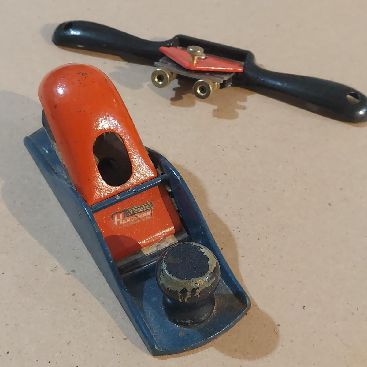 One Stanley brand metal block plane that measures 6.5” x 2.5” x 2.5"H. Plus a spoke plane. Please see photos for details. Shipping available