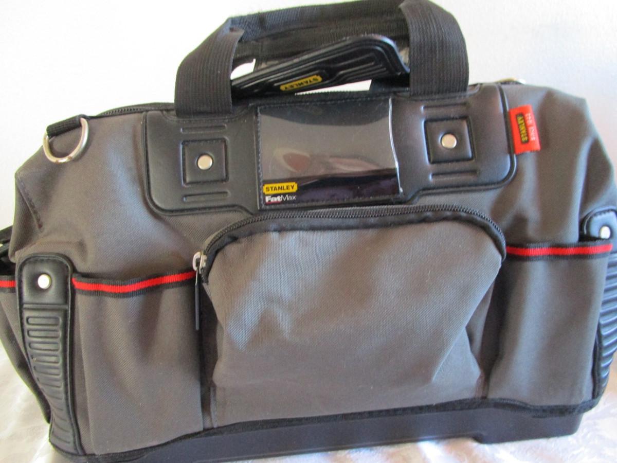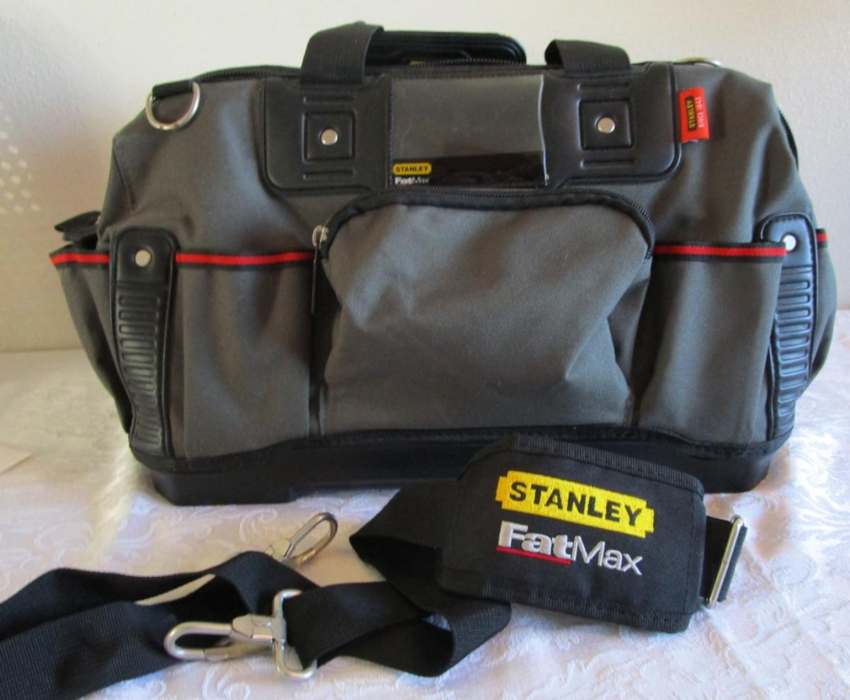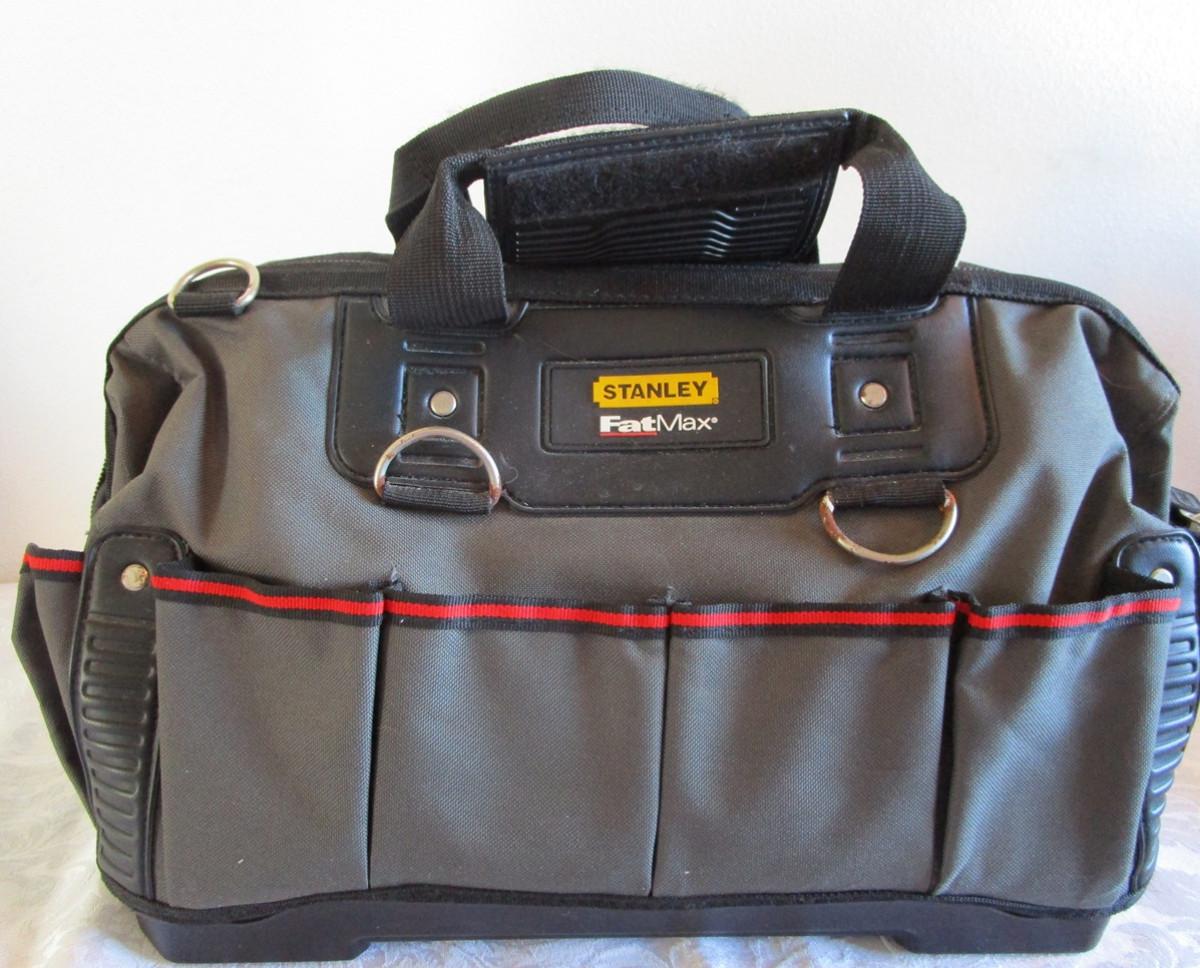 Stanley Fat Max reinforced tool bag with molded plastic bottom insert and shoulder strap