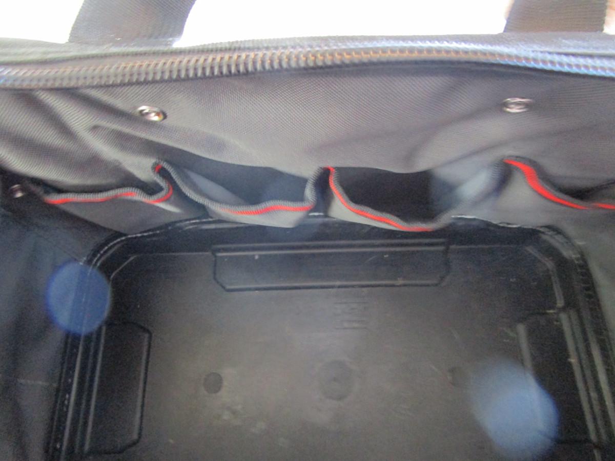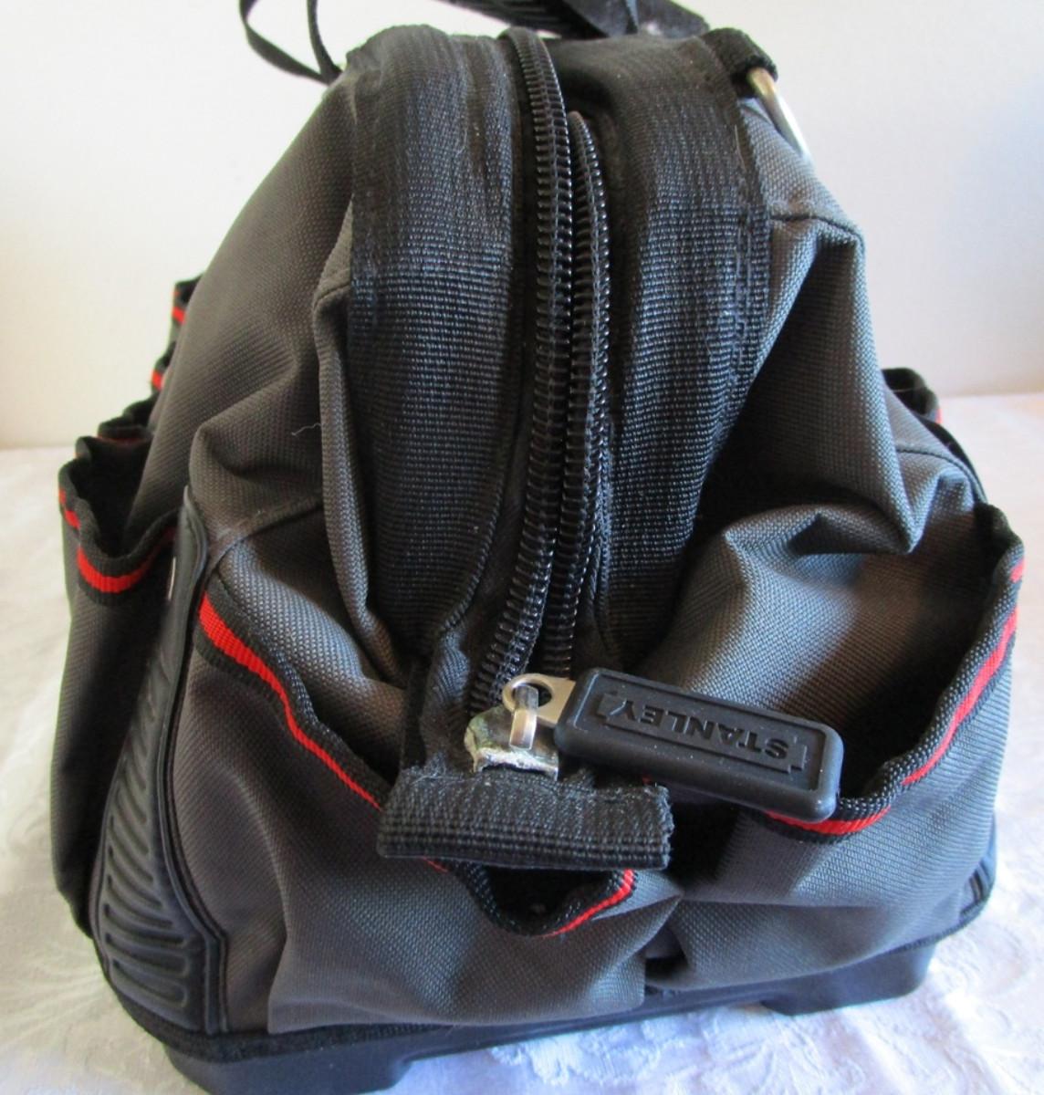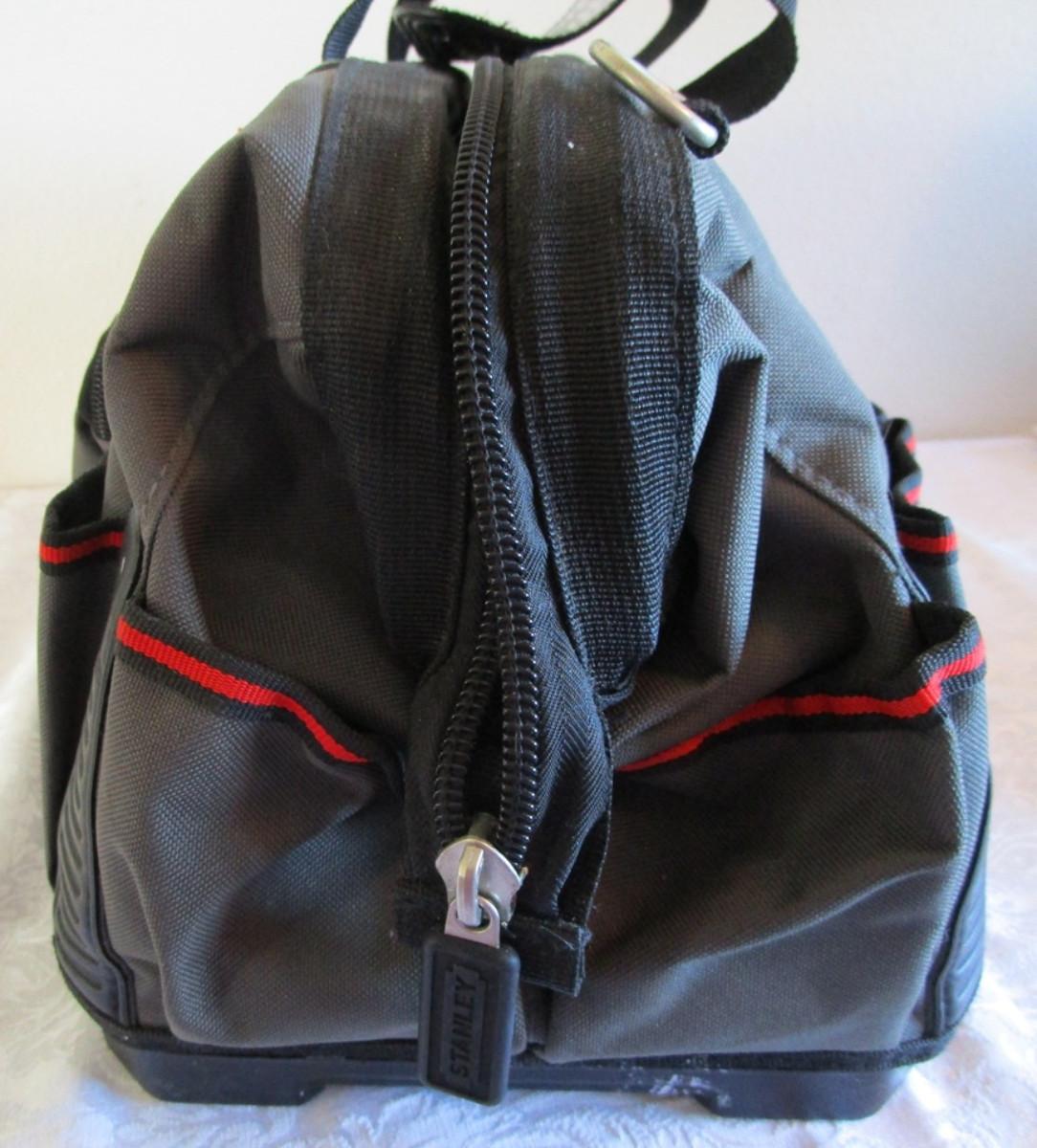 Stanley Fat Max reinforced tool bag with molded plastic bottom insert and shoulder strap