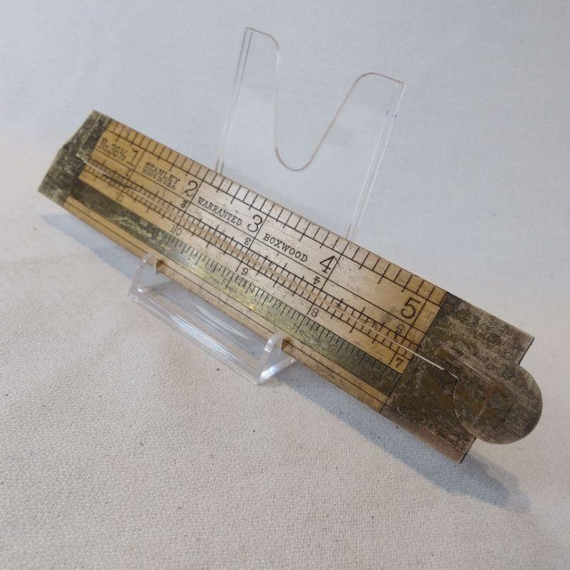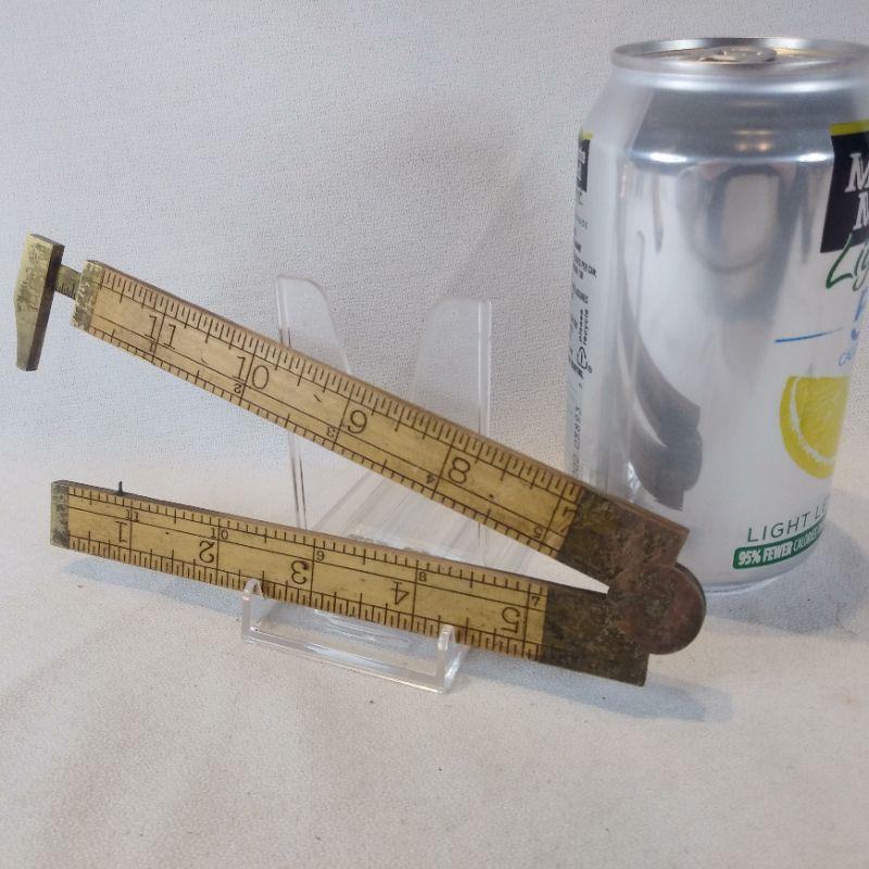This old tool is a Vintage Stanley Folding Rule and Caliper #36 1/2. Opens to 12-inches. Boxwood and brass. Brass shows tarnish but is in very good condition. Reserve/Starting Bid is $15.