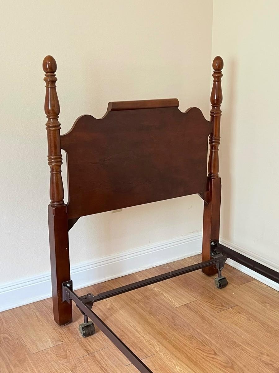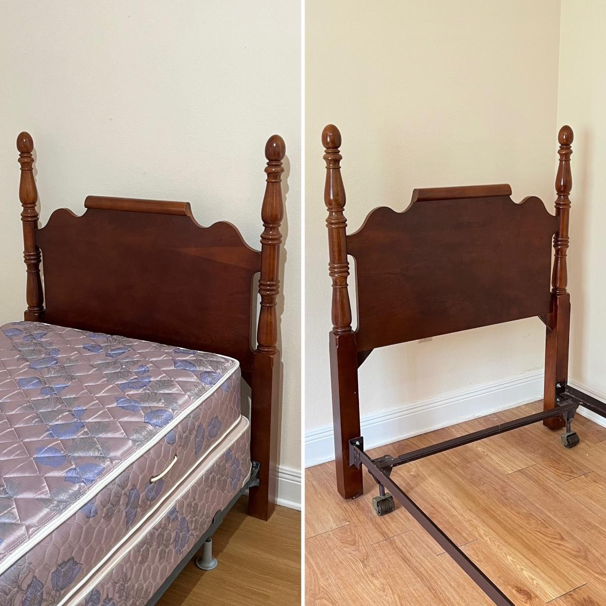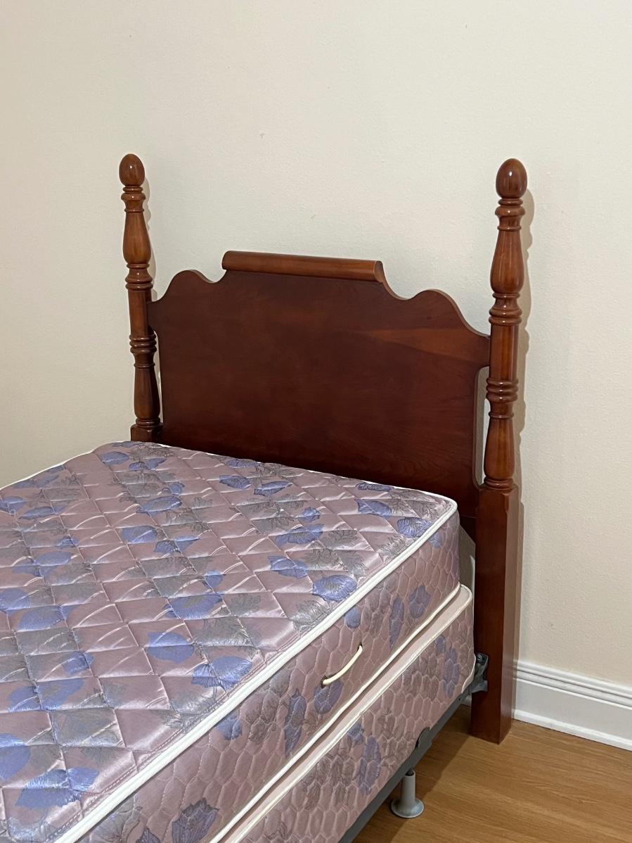 Includes: 2 twin headboards with rails, 1 SEALY mattress & boxspring ~ Mattress has been deodorized, disinfected, & sanitized ~ Mattress has minor rip by tag, see photos ~ Headboards = 51” H