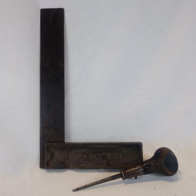 This offering is a pair of vintage used Stanley tools.. The Square is a #4 and the Awe is a #6. They still can be of good use if you need them or add them to that growing and beautiful old tool display.