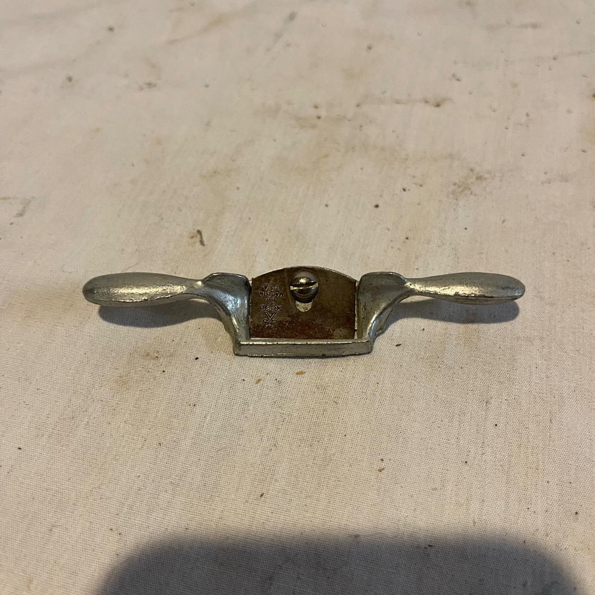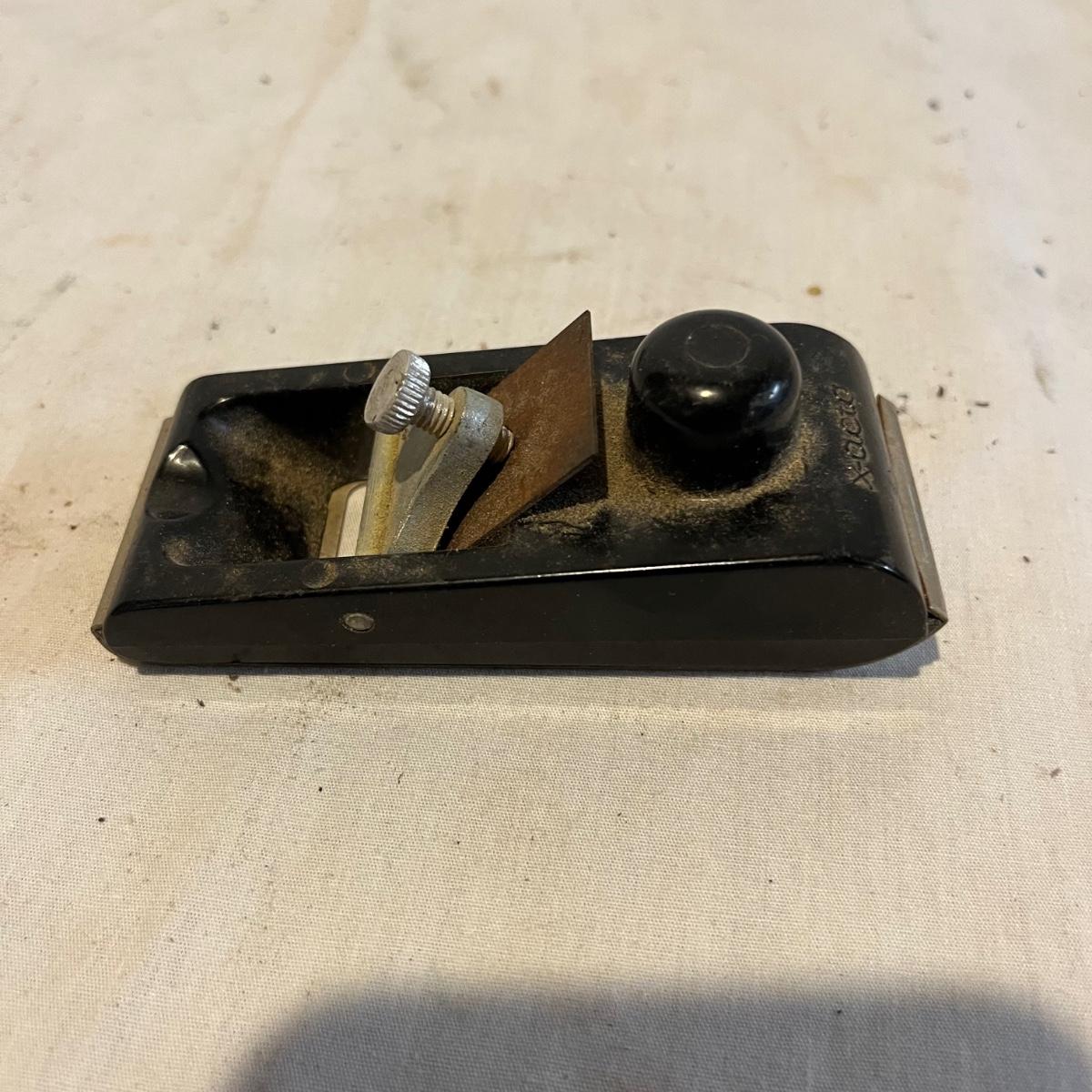 Lot includes Stanley and X-Acto planer, two unmarked planers and one small two hand planer. Largest planer measures 2” x 7” x 2.5”.