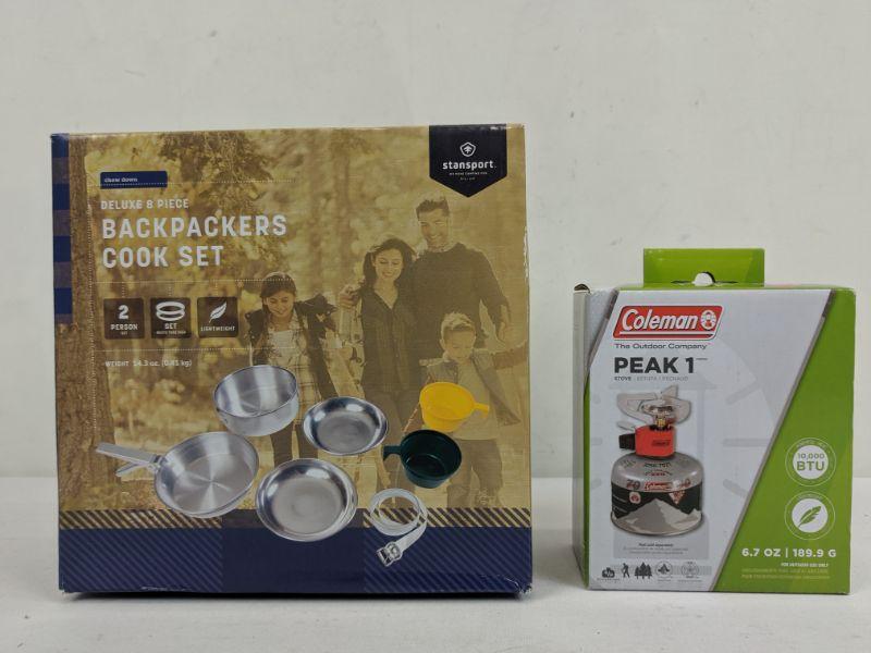 Stansport Backpackers Cook Set, 14.3 oz & Coleman Peak 1 Stove, 6.7 oz - New