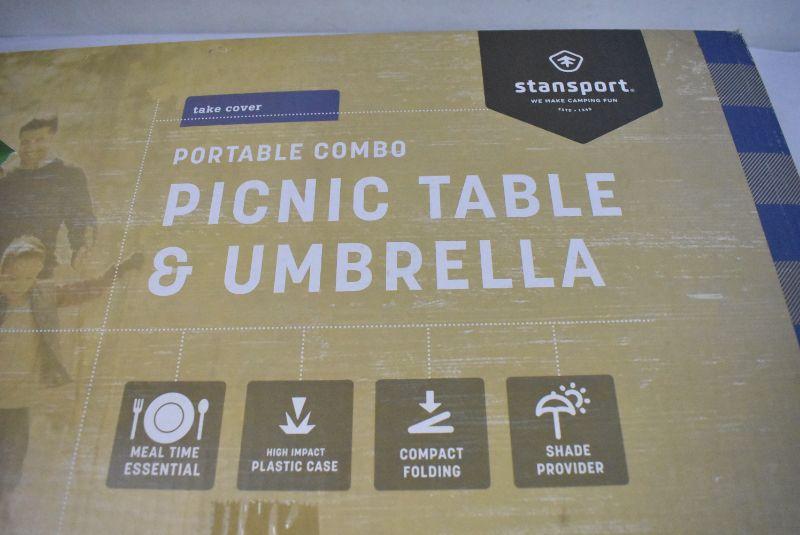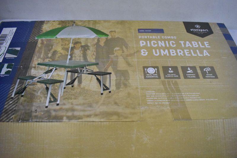 Stansport Camp Picnic Table And Umbrella Combo Pack - Chipped/Cracked Underneath
