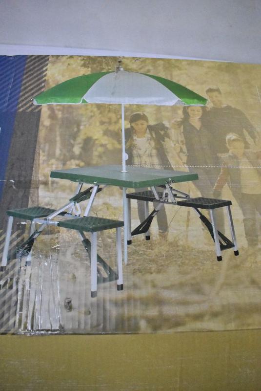 Stansport Camp Picnic Table And Umbrella Combo Pack - Chipped & Cracked Underneath