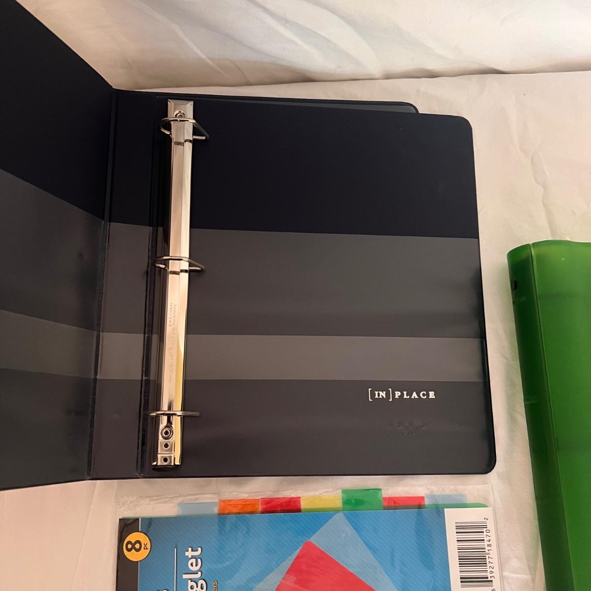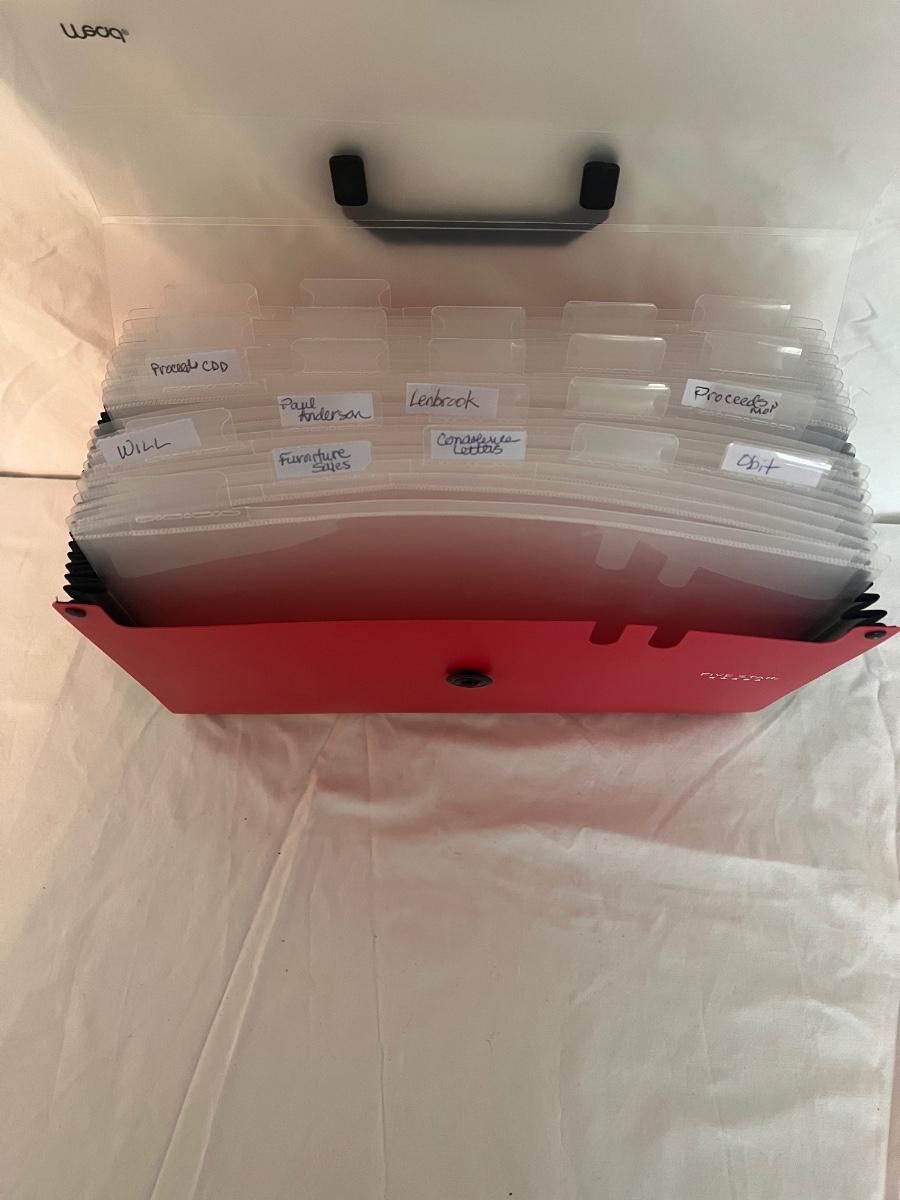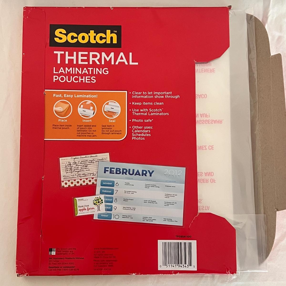 This office lot includes one Staples Electric Paper Shredder, three binders with dividers, one file folder, one Scotch Lamination Sealer, and various sized folders, envelopes, and laminate pouches. The largest item is the paper shredded that measures 15" x 11" x 22.5"H. Local pick up only.