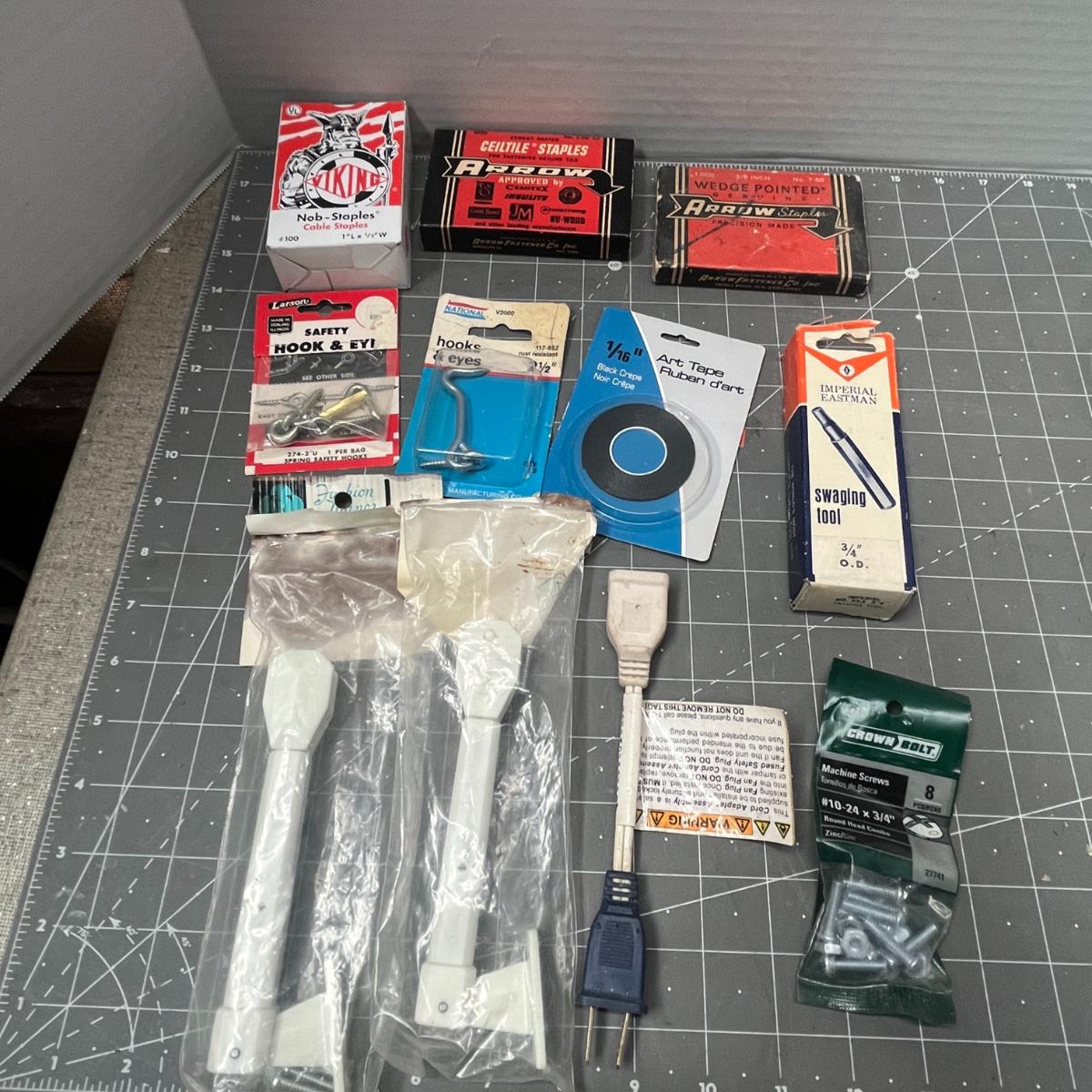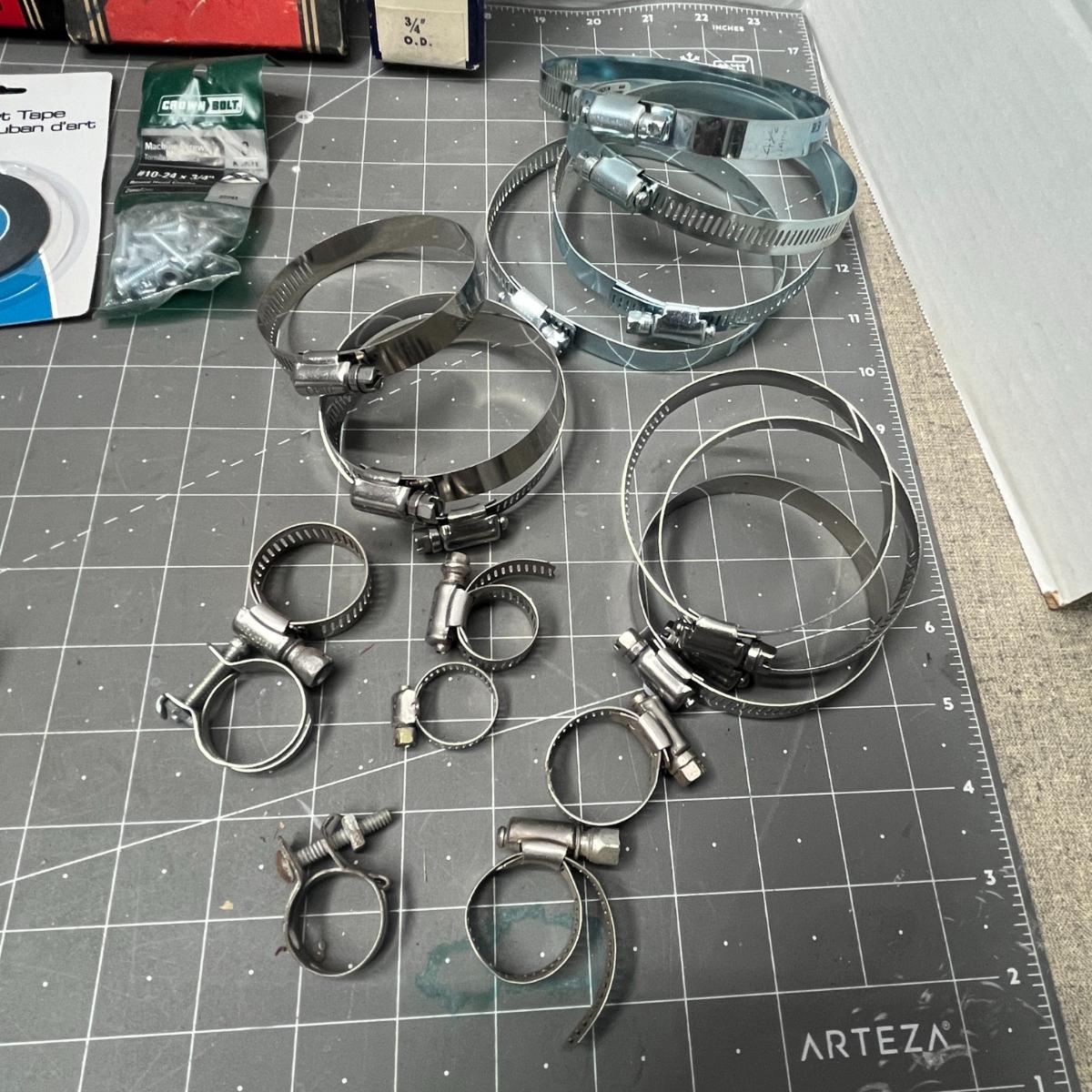Includes Arrow staples, 3M tape, hose clamps, shelf bracket.