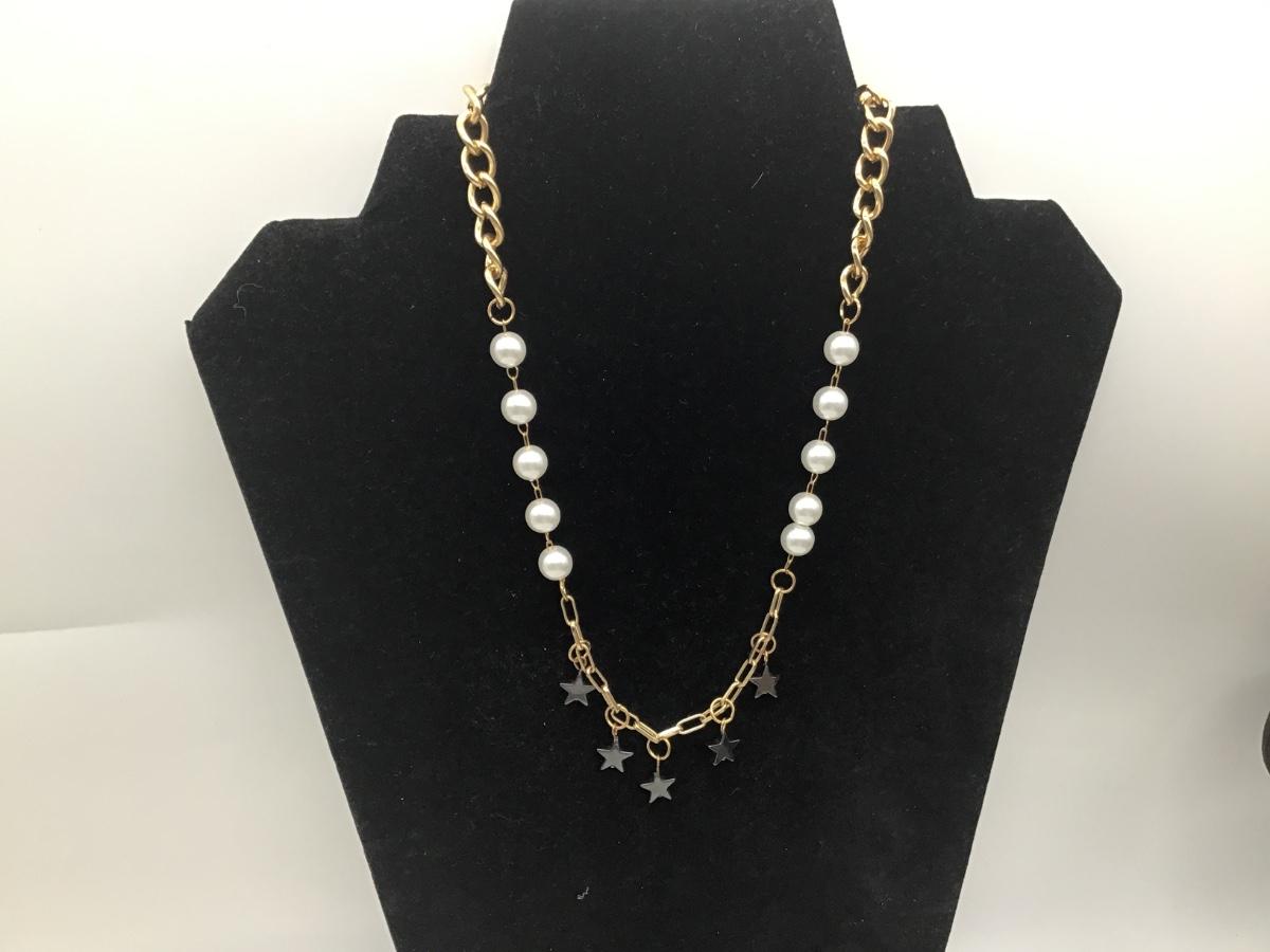 Star and pearls gold toned necklace