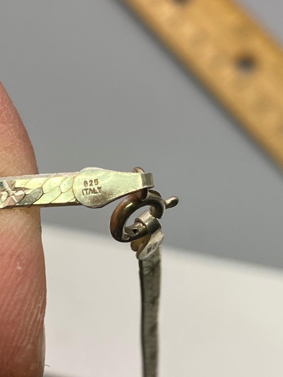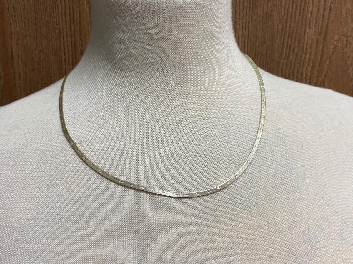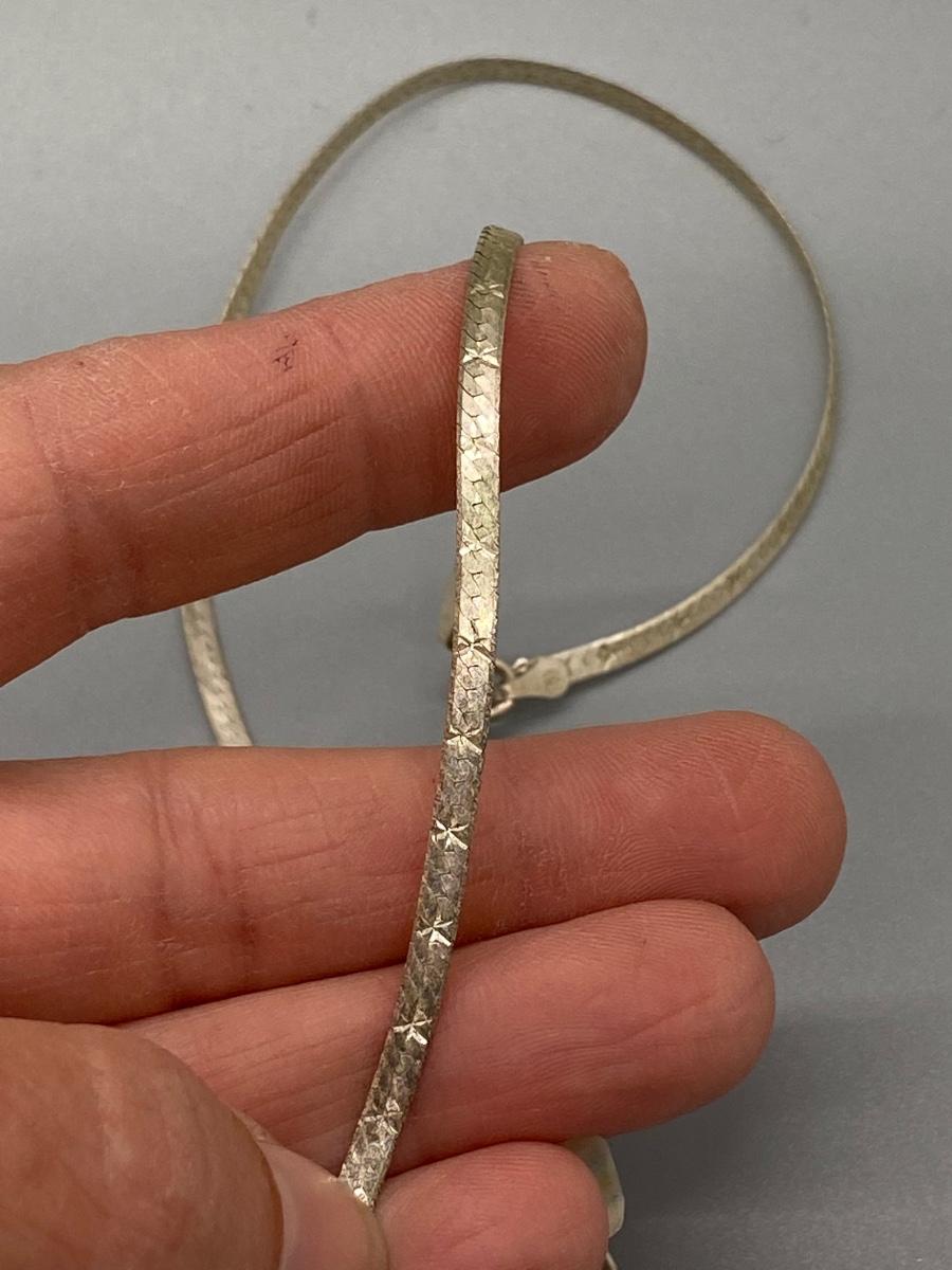 Vintage star etched flat link sterling silver necklace. About 9" length. Stamped 925 Italy at the end.