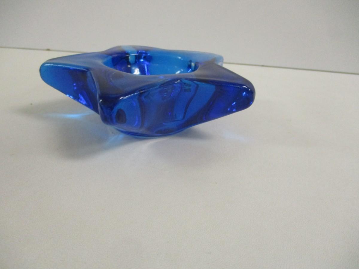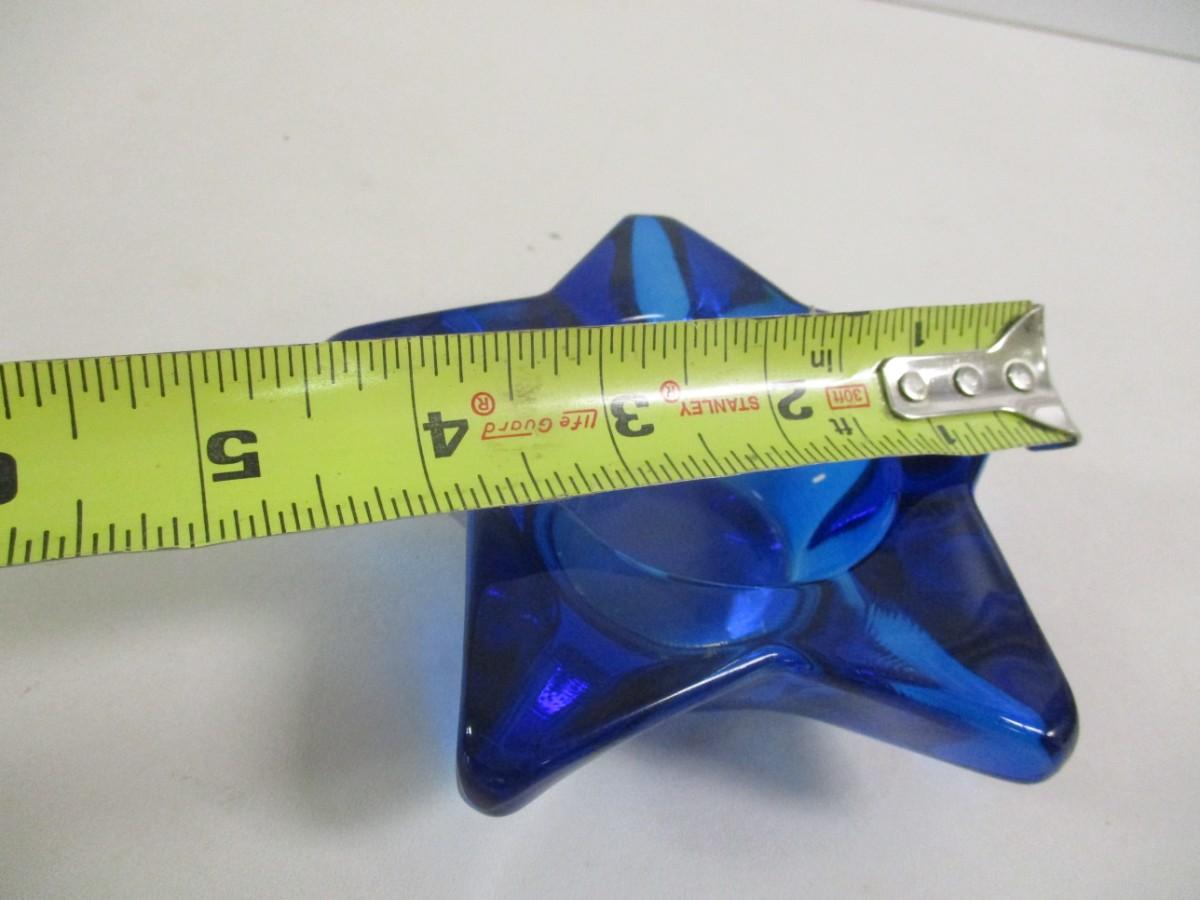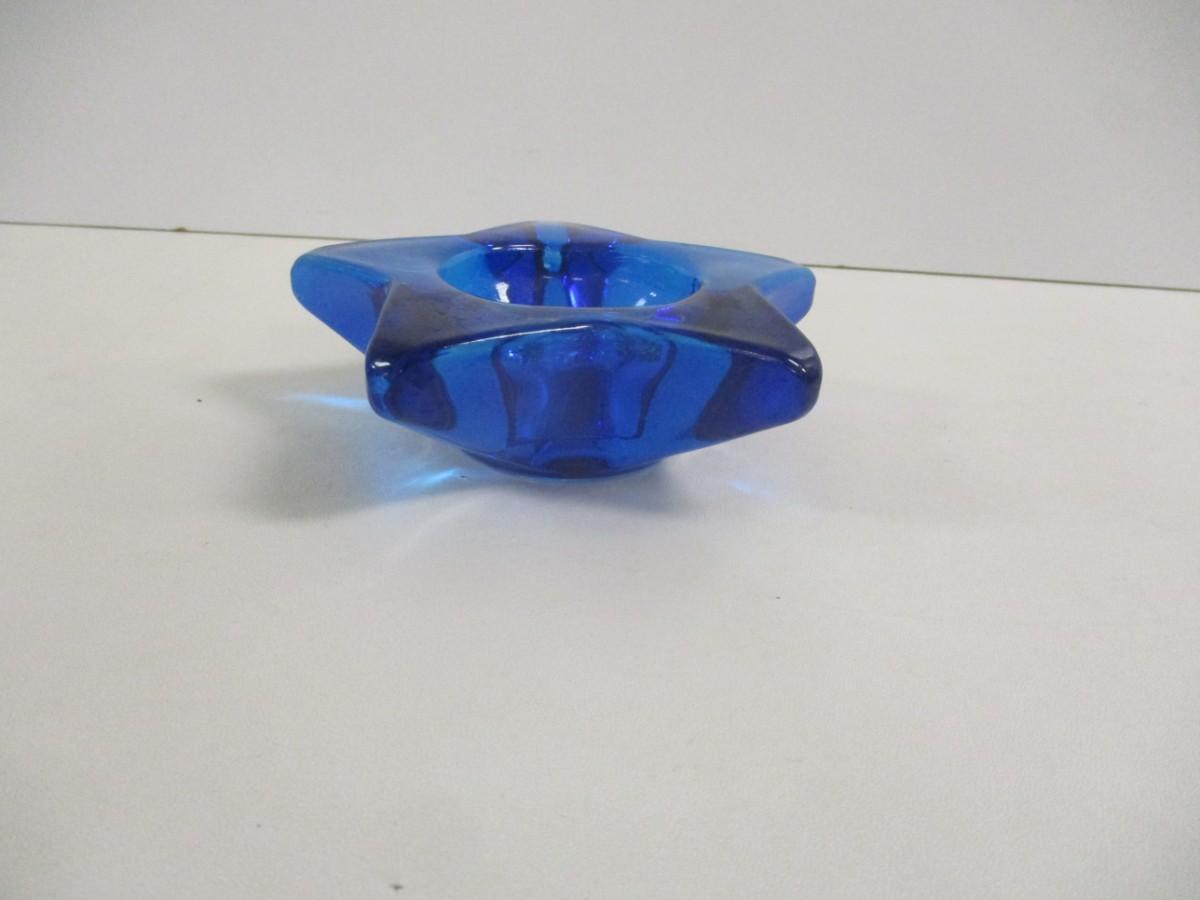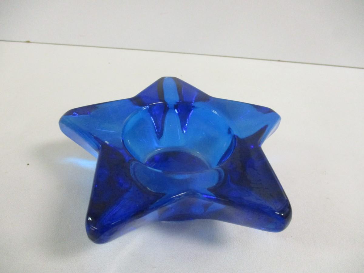 Star Face Cobalt Blue Glass Candle Holder #41