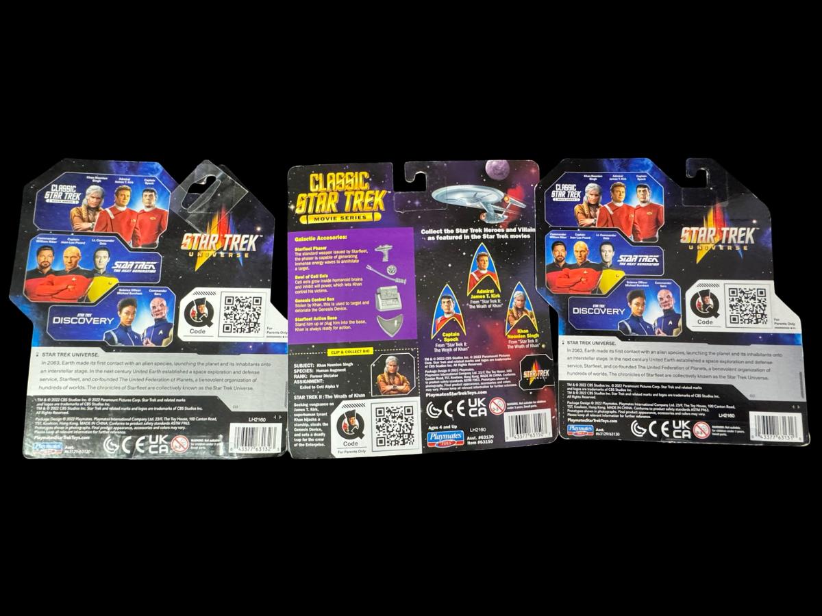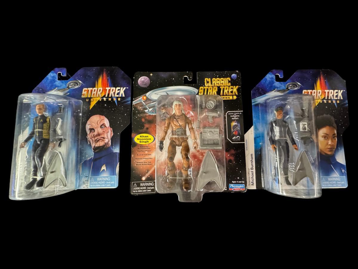 NOS. Includes James Kirk, Khan, and more. Total of five pieces. In the original unopened packaging. Pre-auction estimate: $100-$200.